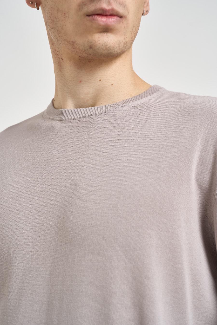BLU CASHMERE Maglia uomo girocollo grigio. Modello regular fit. Manica lunga. Dettagli a costine. Composizione: 100% cotone. Il modello è alto 190 cm e indossa la taglia 50.