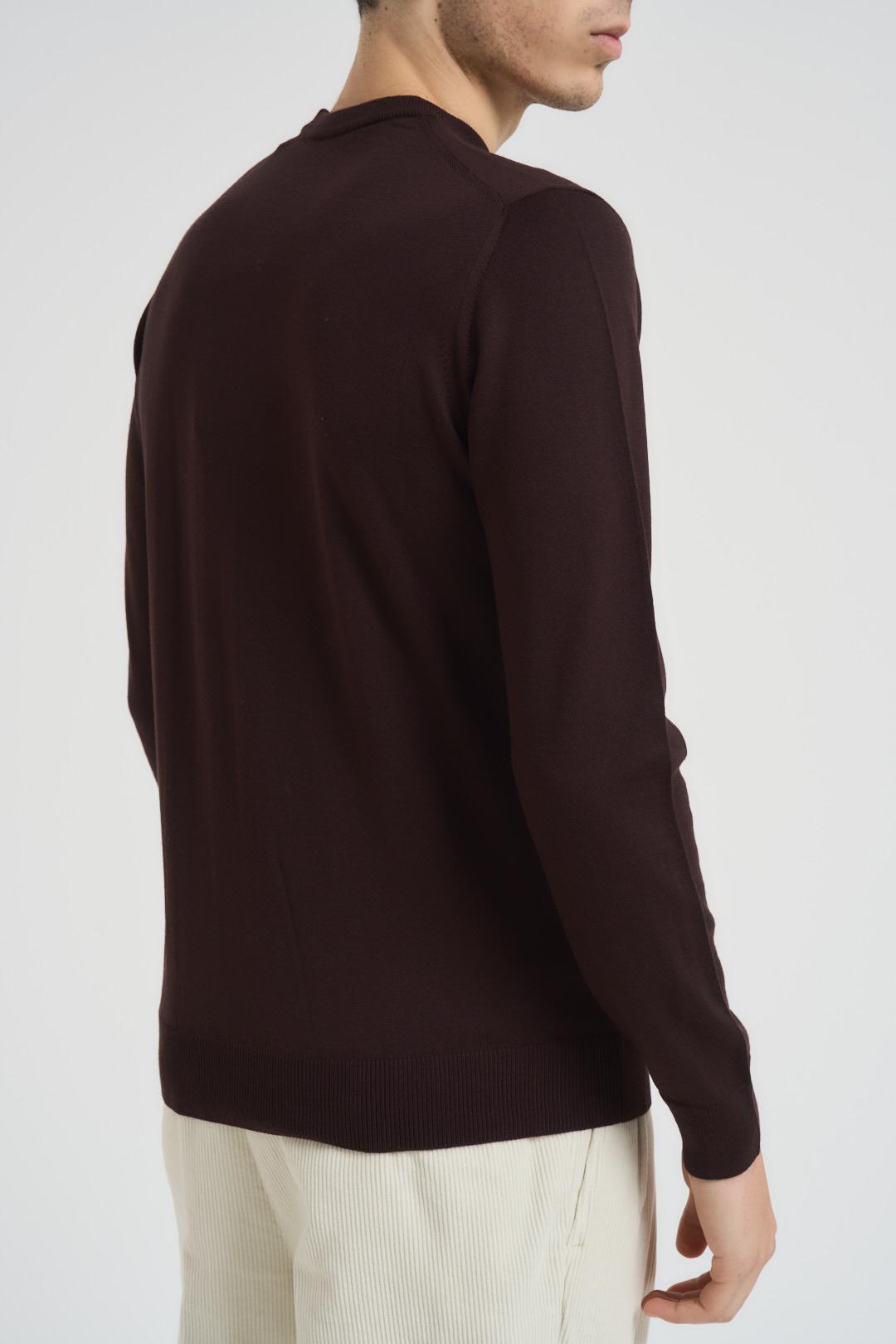 ALPHA STUDIO Maglia uomo girocollo marrone. Modello slim fit. Composizione: 100% lana. Il modello è alto 190cm e indossa la taglia 50.