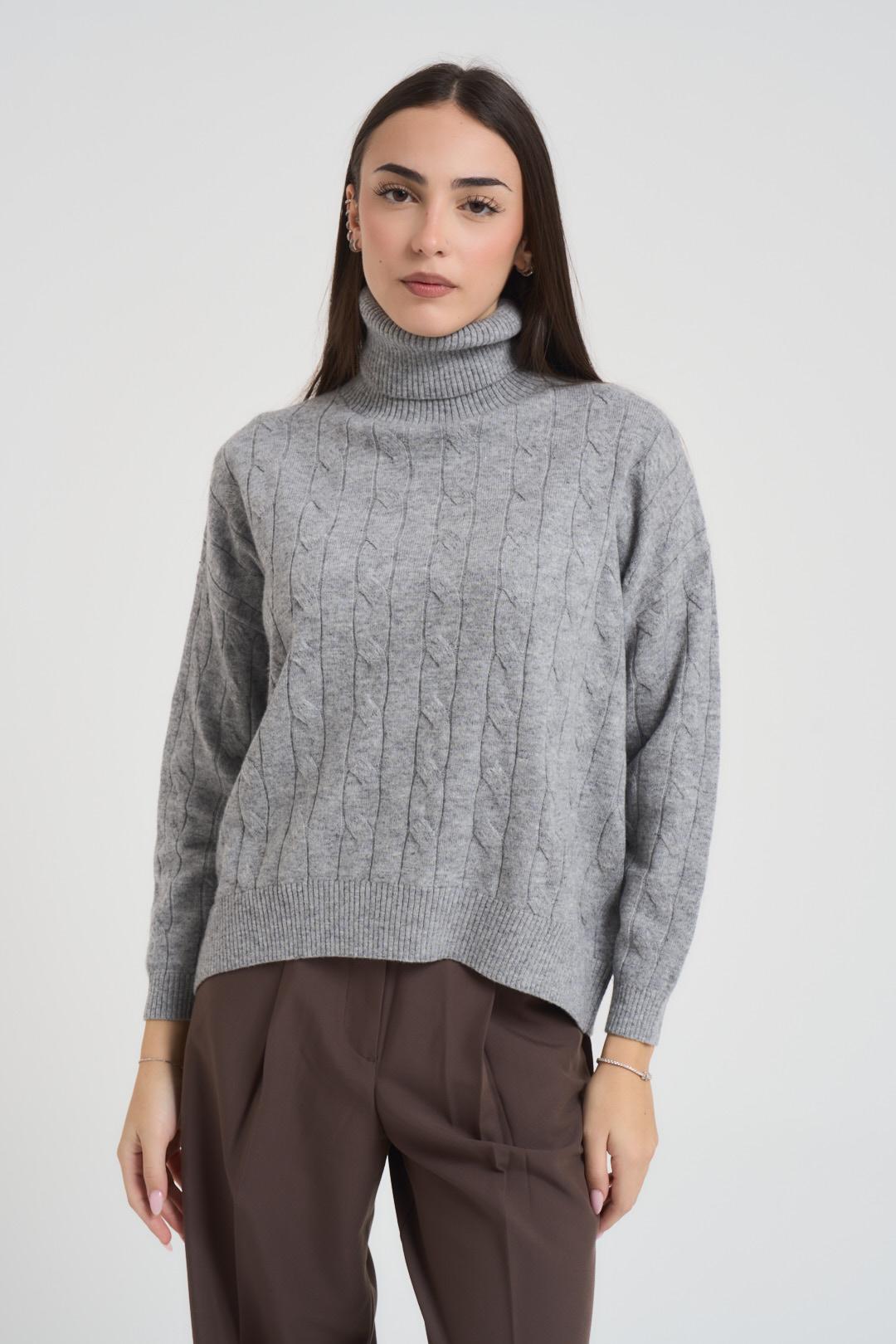 INCLOTH Maglione a trecce in misto cashmere. Modello a scatolina con collo alto. Giromanica sceso, vestibilità morbida. Il davanti è caratterizzato da motivo a trecce, il dietro è liscio. Colore: grigio chiaro. La modella è alta 172 cm e indossa la tg S/M.