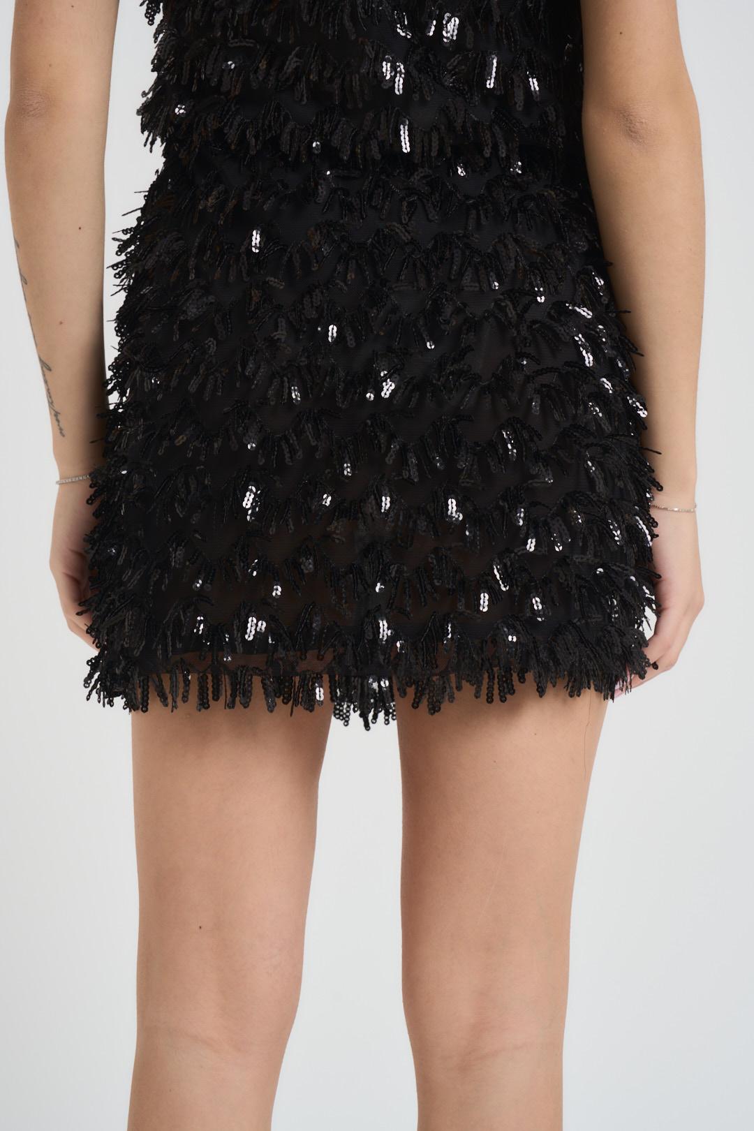 VICOLO Minigonna donna con paillettes nera. Modello abbinato al suo top, regular fit. Composizione: 100% poliestere. La modella è alta 172 cm e indossa la taglia S.