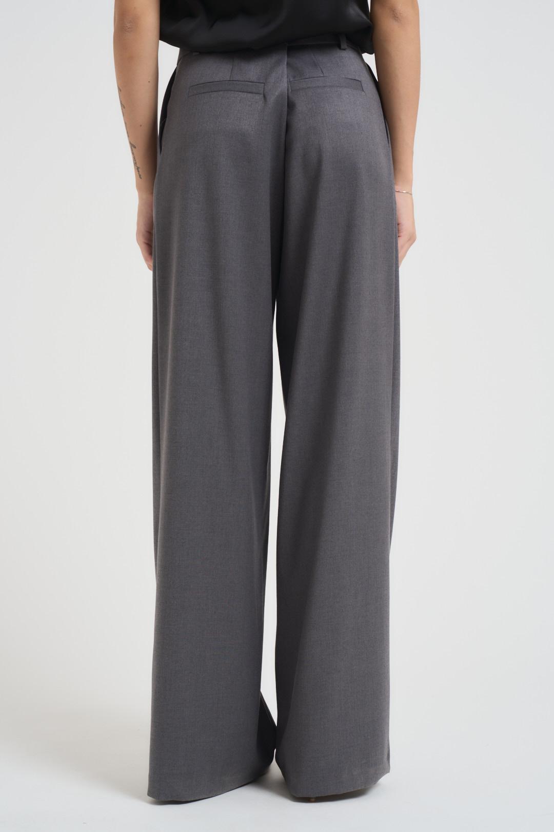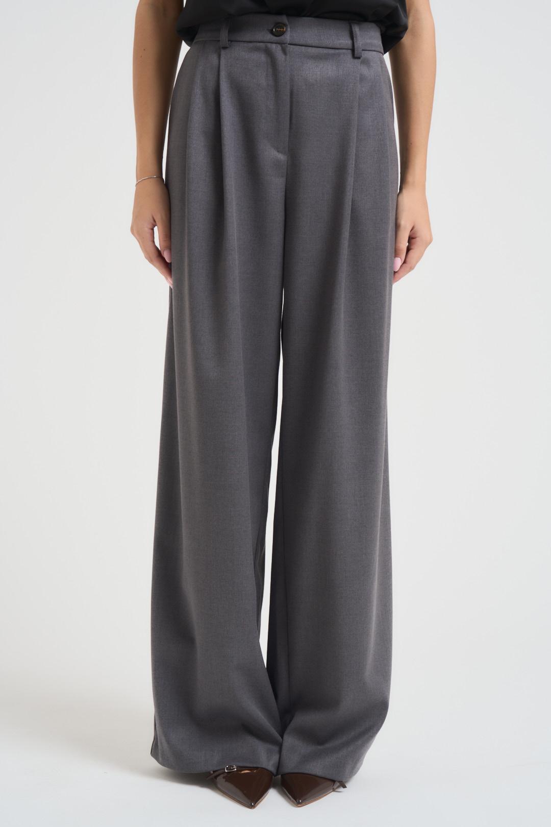 MOTEL Pantalone ampio donna con pence grigio. Modello a vita alta, morbido. Chiusura con zip e bottoni. Passanti. Composizione: misto poliestere e viscosa. La modella è alta 172 cm e indossa la taglia S.