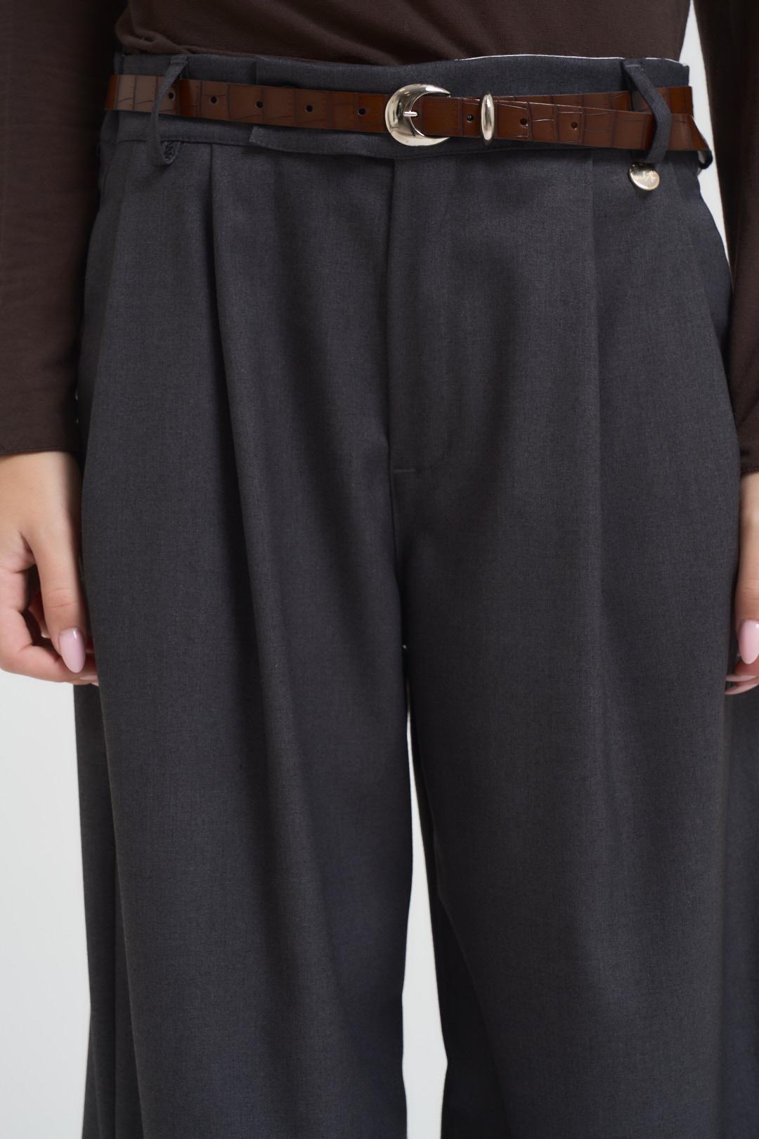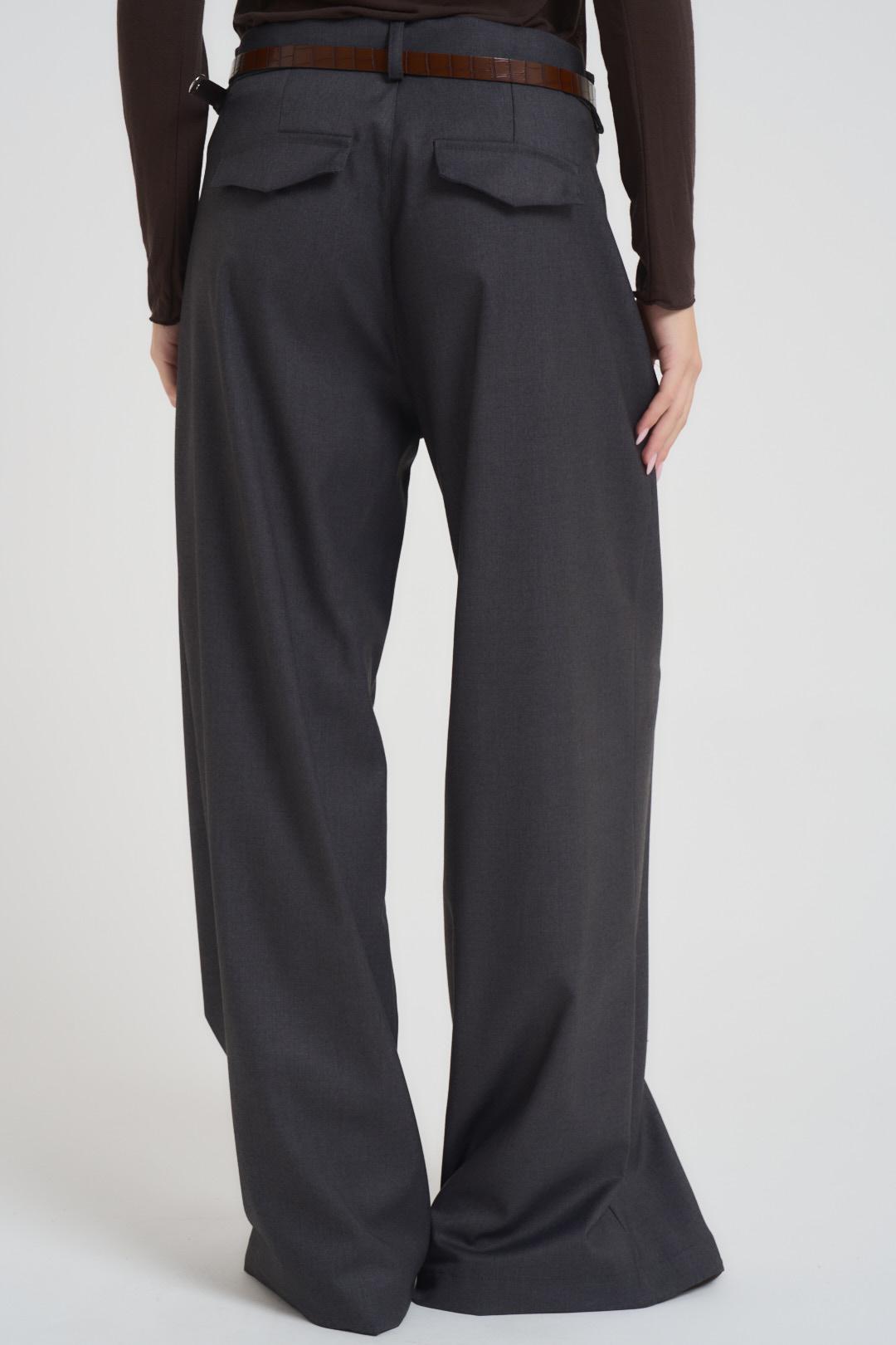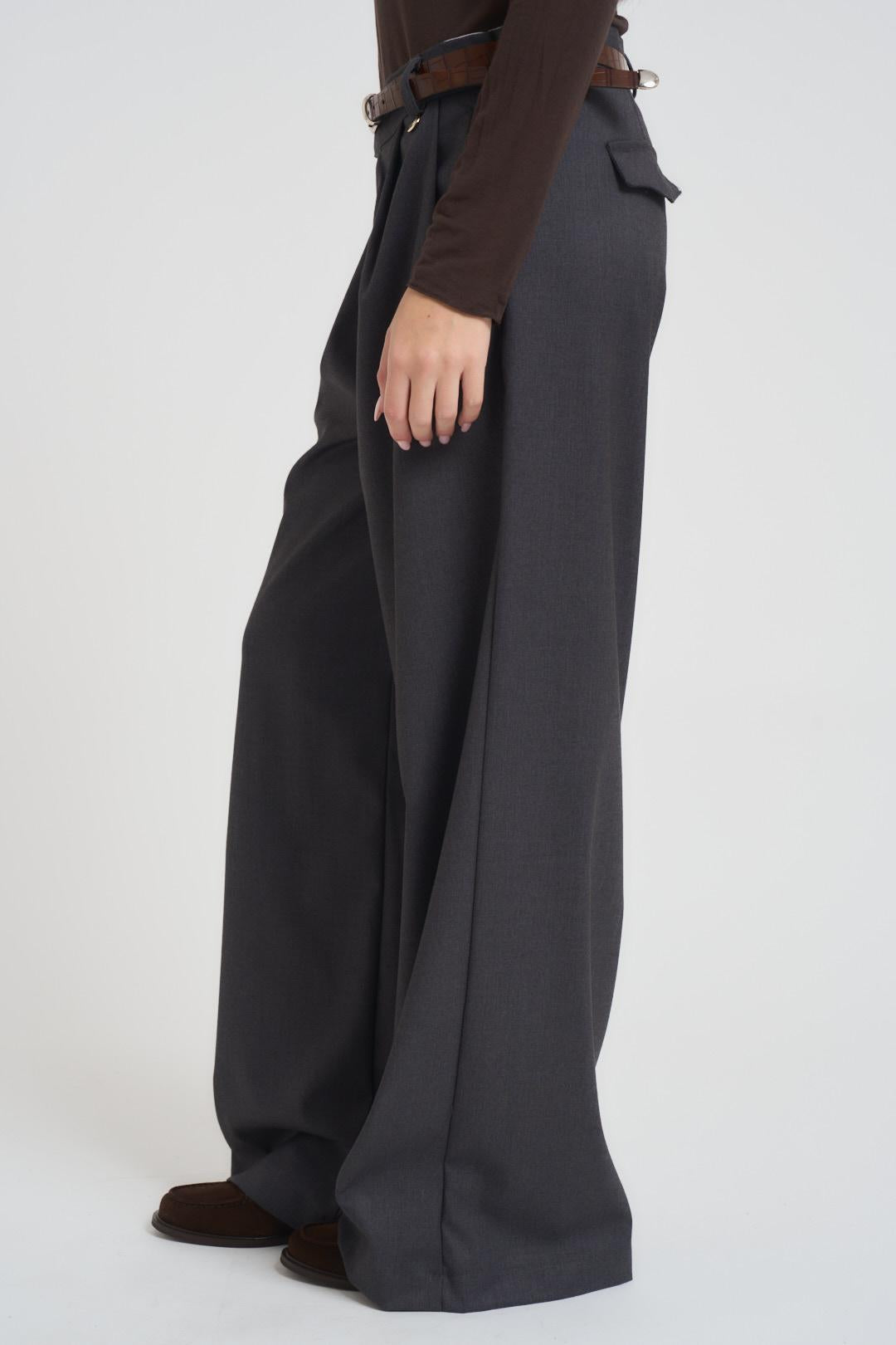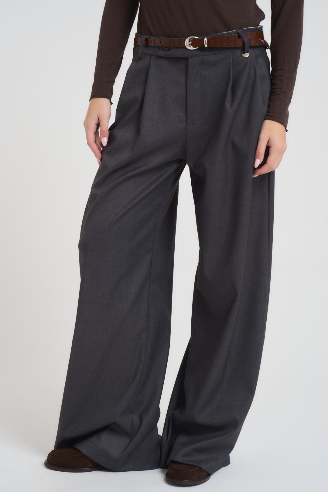 INCLOTH Pantalone donna a palazzo grigio scuro. Modello con pinces. Chiusura frontale con zip e bottone. Tasche sul davanti all'italiana. Tasche sul retro con patta. Passanti in vita. Composizione: 64%Poliestere 33%Viscosa 3%Elastan. La modella è alta 172 cm e indossa la taglia S.