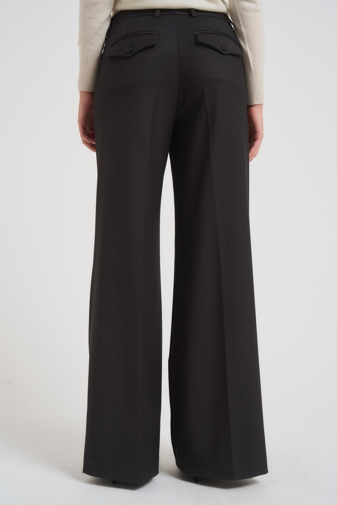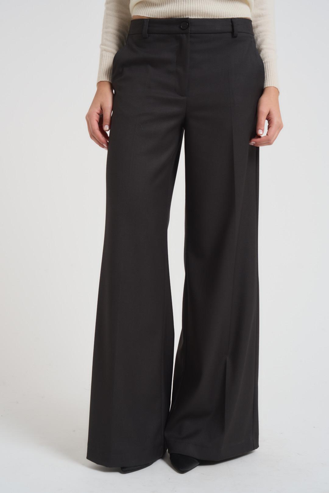 VICOLO Pantalone donna a palazzo grigio. Modello sartoriale con taschini posteriori, tasche a filo e chiusura con zip e bottone. Composizione: 62% poliestere 35% viscosa 3% elastan. La modella è alta 172cm e indossa la taglia S.