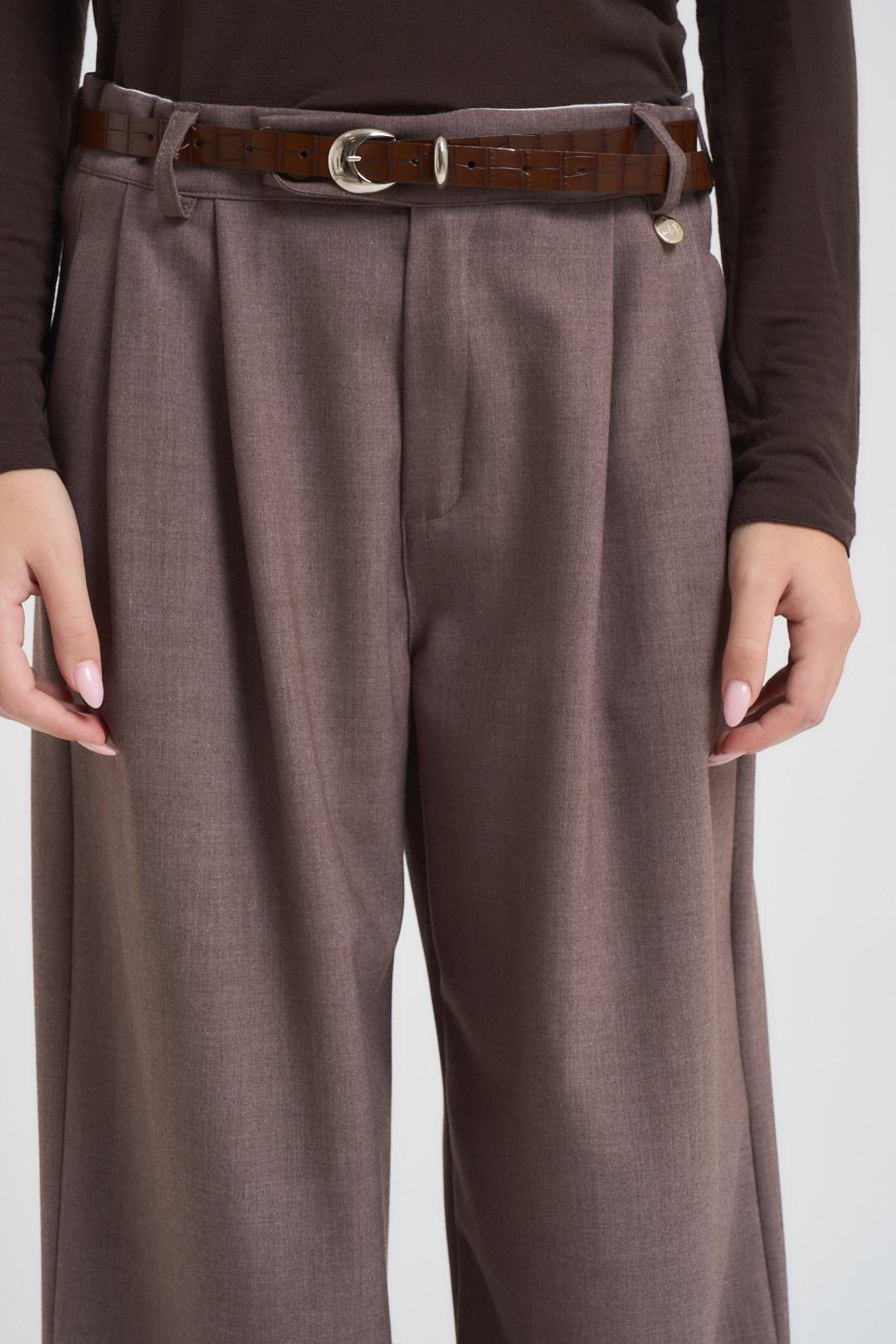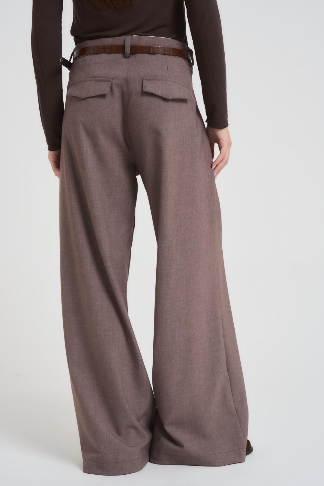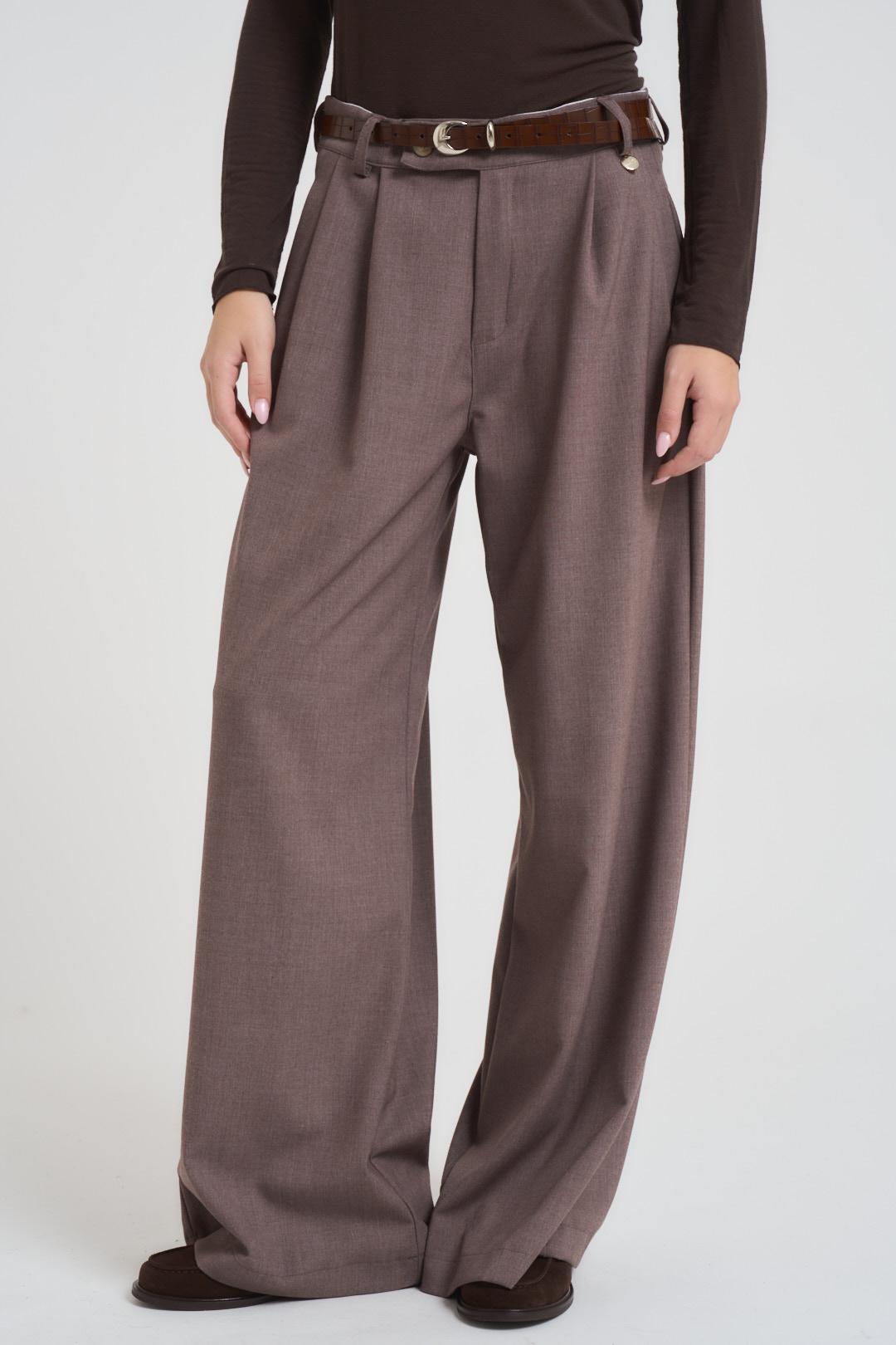INCLOTH Pantalone donna a palazzo nocciola. Modello con pinces. Chiusura frontale con zip e bottone. Tasche sul davanti all'italiana. Tasche sul retro con patta. Passanti in vita. Composizione: 64%Poliestere 33%Viscosa 3%Elastan. La modella è alta 172 cm e indossa la taglia S.