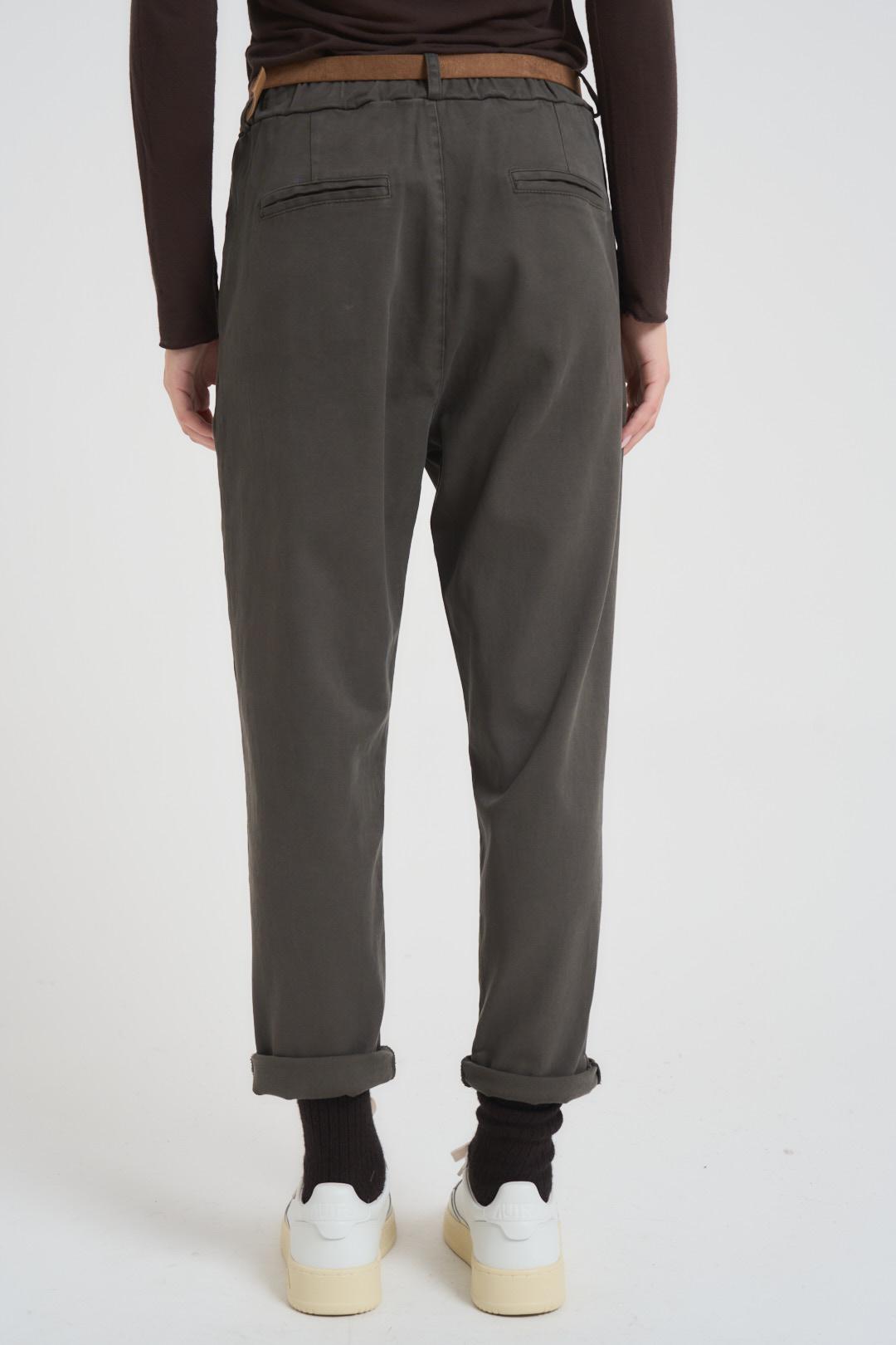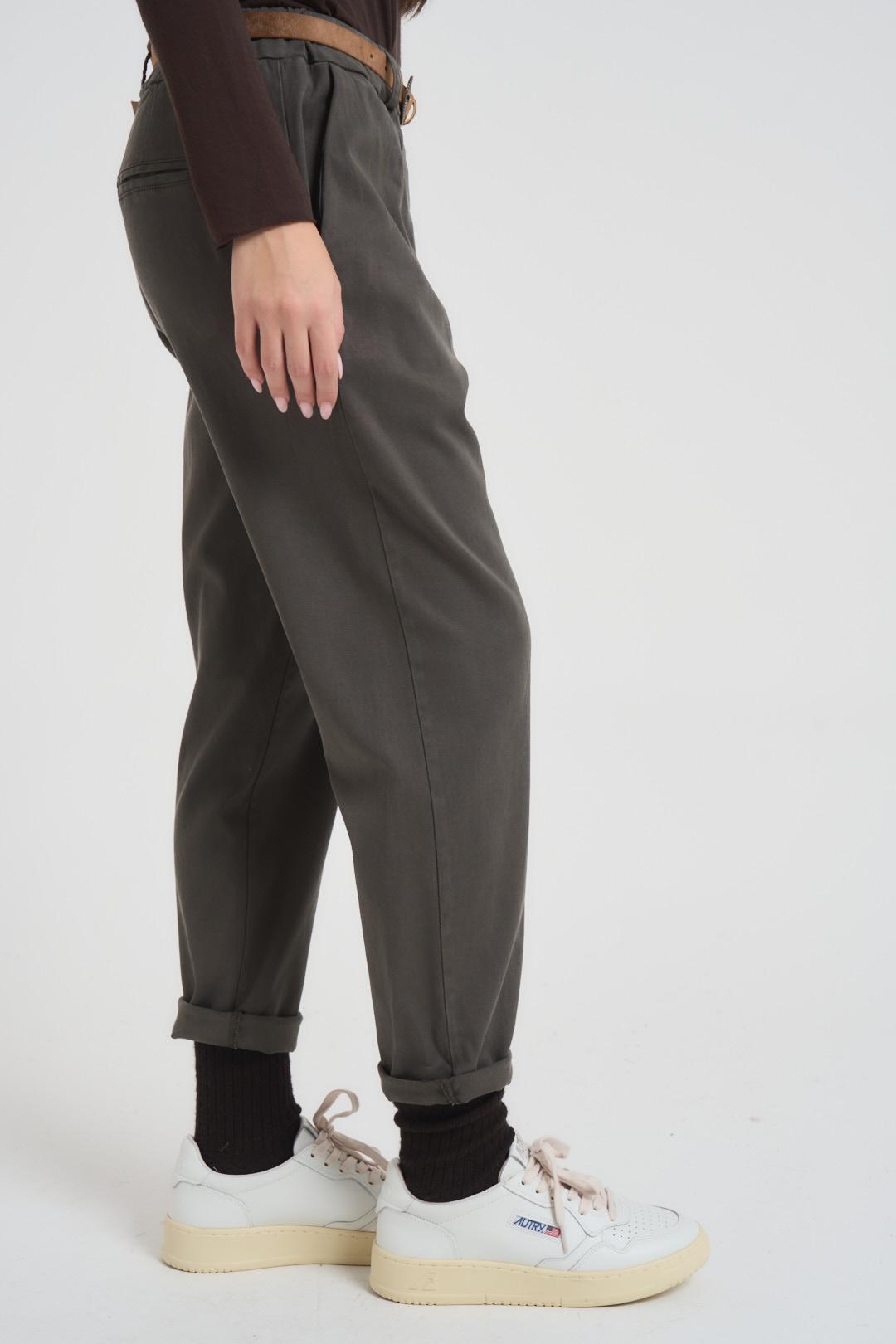 INCLOTH Pantalone donna regular grigio. Modello con lunghezza alla caviglia, elastico in vita e passanti con cintura in ecopelle cammello. Composizione: cotone. La modella è alta 172 cm e indossa la taglia S.