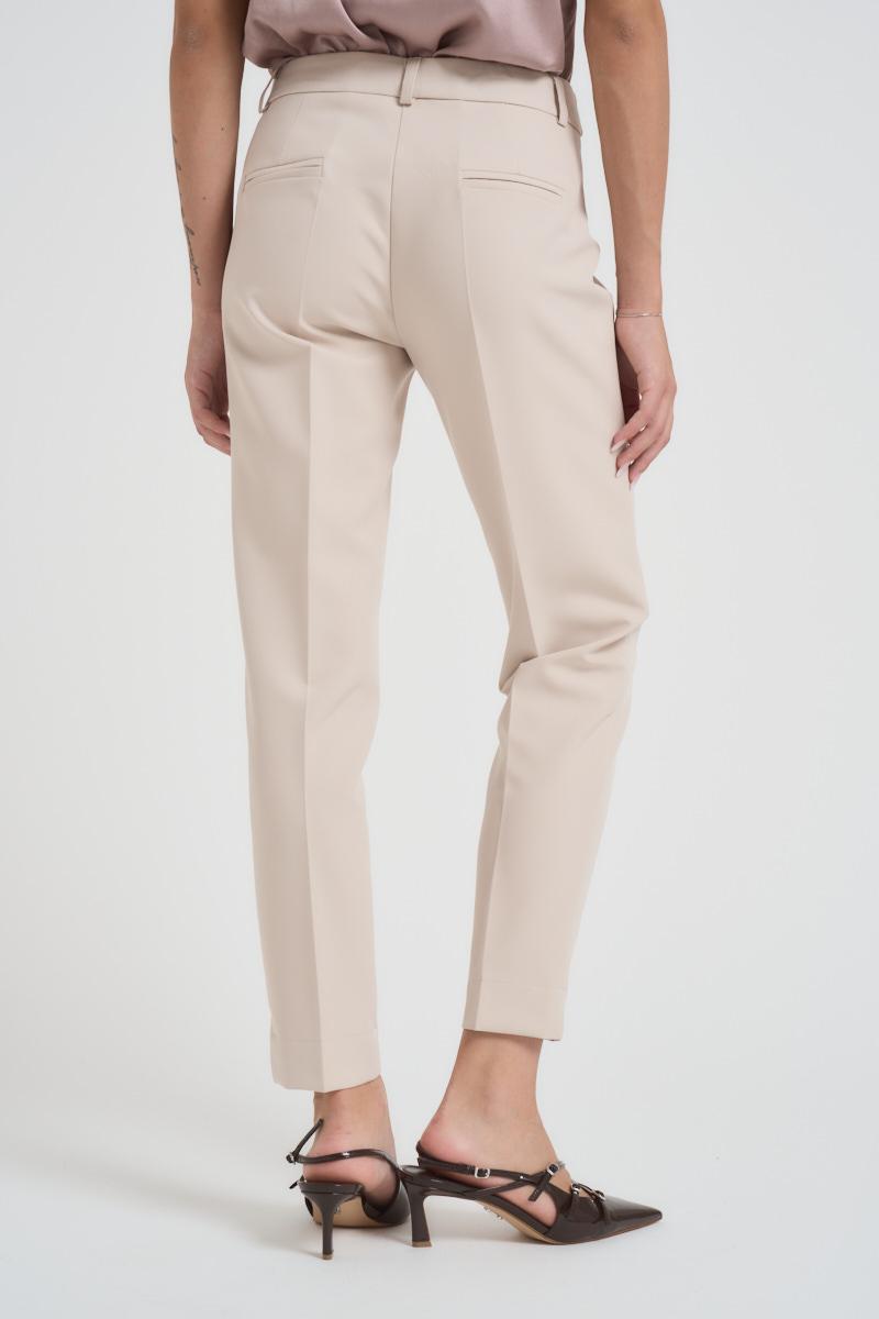 MARYLEY Pantalone donna regular panna. Modello a sigaretta, con due tasche a filetto e chiusura con zip e bottone. Composizione: 89% poliestere, 11% elastane. La modella è alta 172 cm e indossa la taglia S.