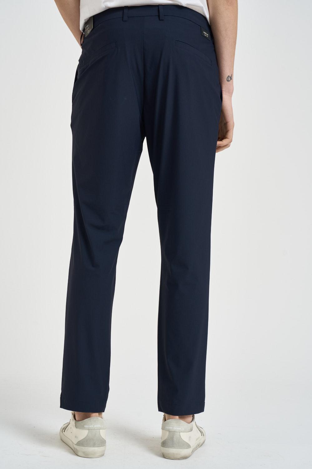 REPLAY Pantalone uomo chino blu. Modello a vita media con vestibilità regolare e gamba dritta. Chiusura frontale con zip e bottone e passanti per cintura. Dotati di tasche laterali e tasche a filo. Composizione: 76% Poliammide, 24% Elastane. Il modello è alto 190cm e indossa la taglia 32.