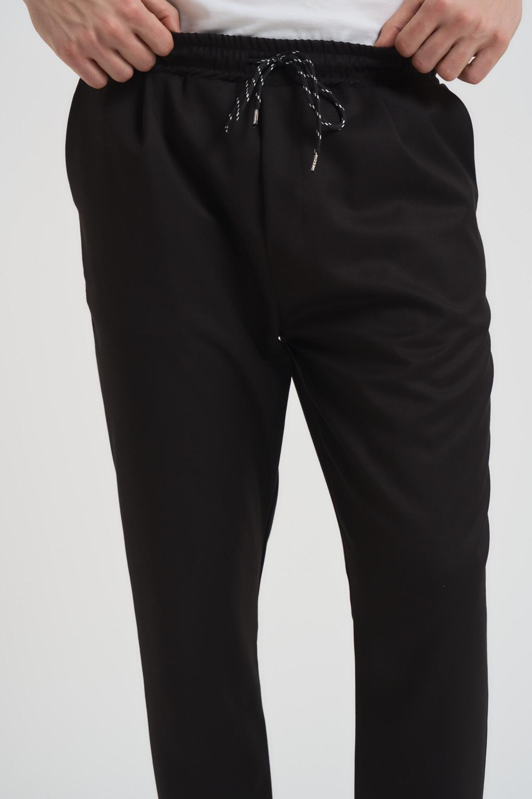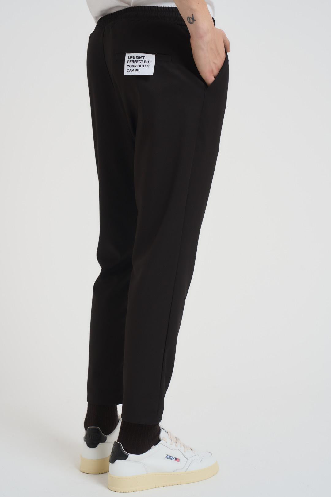 MAIN DELUXE Pantalone uomo con coulisse nero. Modello chino. Coulisse in vita. Due tasche oblique poste frontalmente. Tasca a filetto posta sul retro. Patch con scritta applicato sul retro. Composizione: misto pl. Il modello è alto 190 cm e indossa la taglia L.