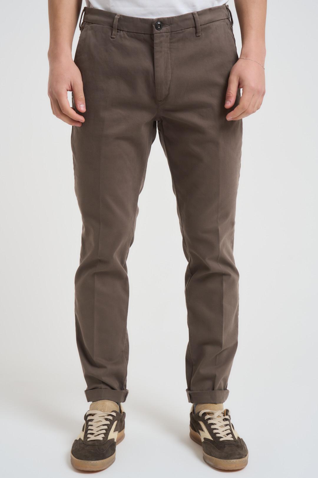 40WEFT Pantalone uomo slim fit marrone. Modello con chiusura zon zip e bottone. Passanti in vita. Tasche laterali. Tasche a filo con bottoni sul retro. Composizione: 97% cotone, 3% elastane. Il modello è alto 190 cm e indossa la taglia 50.