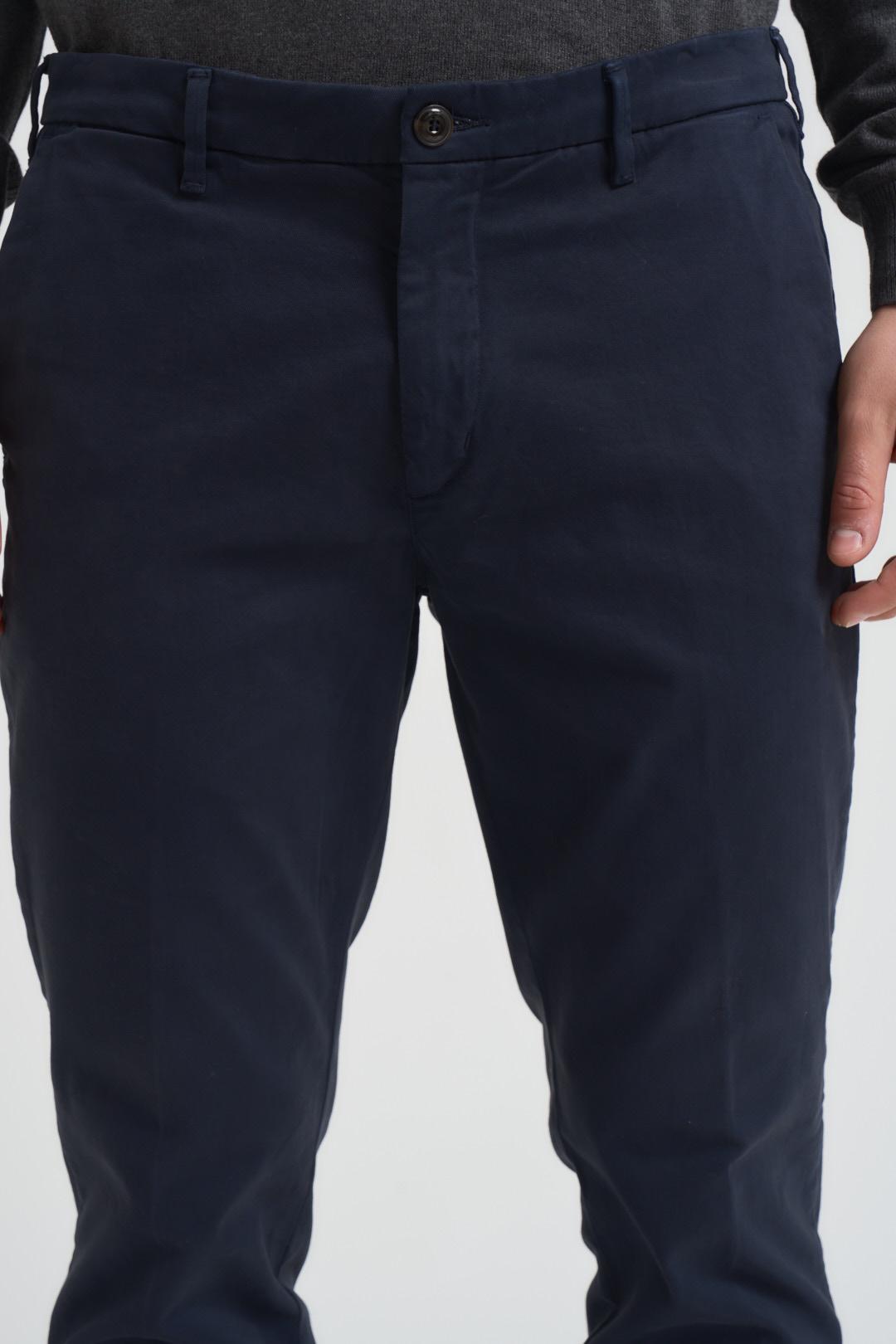 40WEFT Pantalone uomo slim fit blu. Modello con chiusura zon zip e bottone. Passanti in vita. Tasche laterali. Tasche a filo con bottoni sul retro. Composizione: 97% cotone, 3% elastane. Il modello è alto 190 cm e indossa la taglia 50.