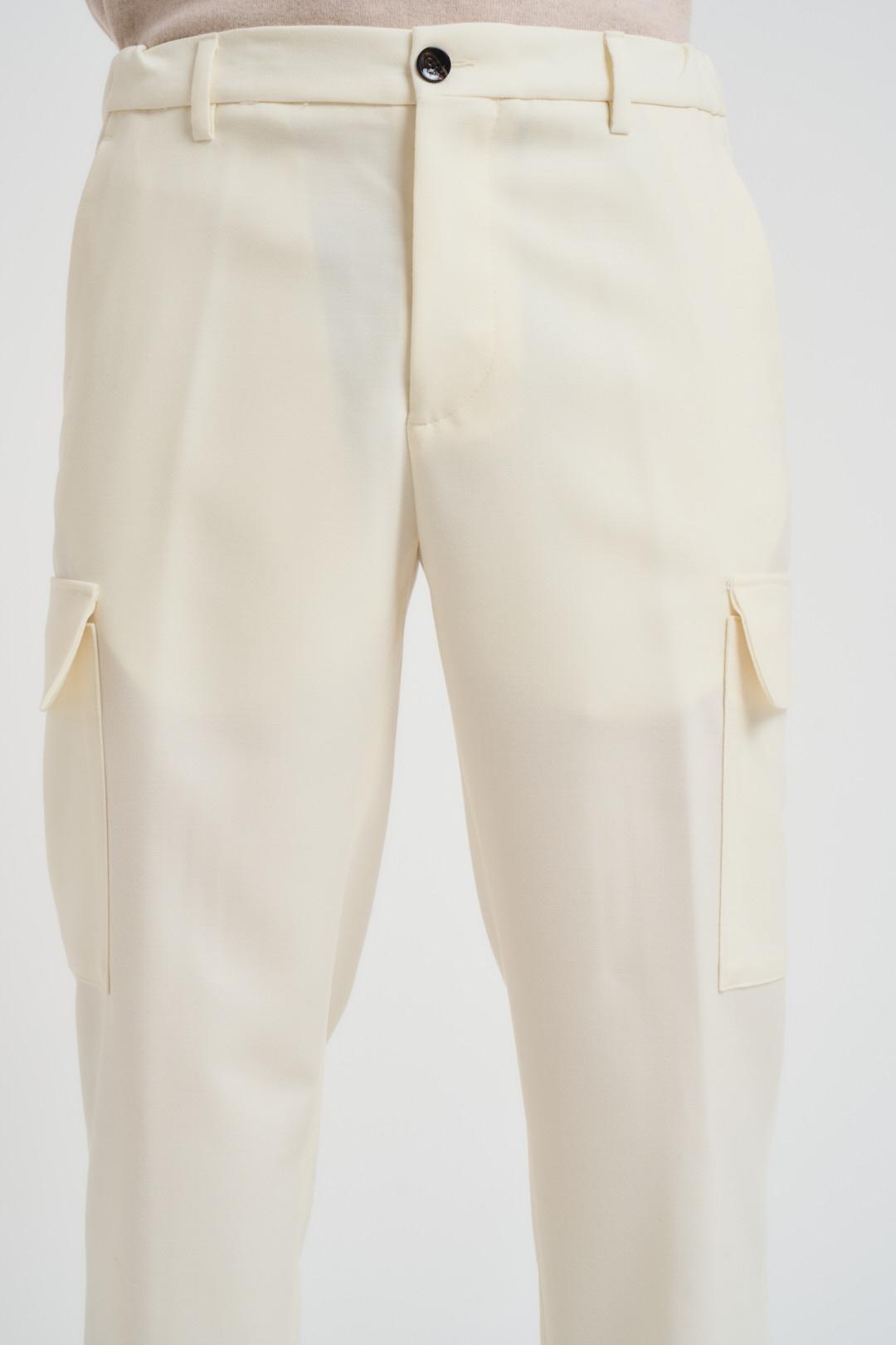 MICHAEL COAL Pantalone uomo dritto panna. Modello lunghezza fino alla caviglia. Chiusura frontale con zip e bottone. Tasche laterali. Due tasche con patta. Tasche sul retro a filo. Passanti in vita. Composizione: 100% lana vergine. Il modello è alto 190 cm e indossa la taglia 32.