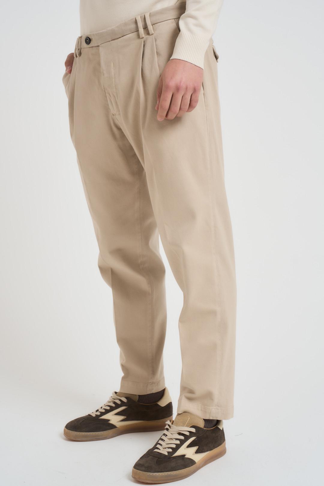 MICHAEL COAL Pantalone uomo dritto sabbia. Modello lunghezza alla caviglia. Chiusura con zip e bottone. Passanti in vita. Tasche laterali. Tasche sul retro con patta. Doppia piences e pieghe. Composizione: 52% lana, 43% poliestere, 5% elastane. Il modello è alto 190 cm e indossa la taglia 32.