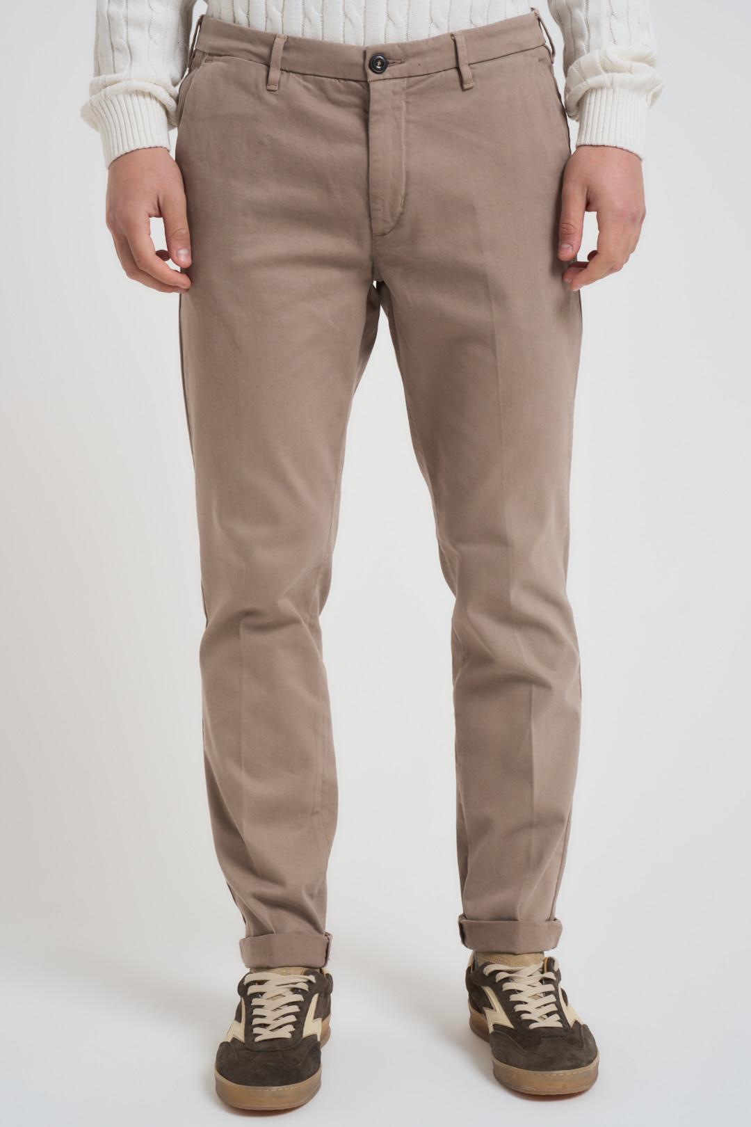 40WEFT Pantalone uomo slim fit tortora. Modello con chiusura zon zip e bottone. Passanti in vita. Tasche laterali. Tasche a filo con bottoni sul retro. Composizione: 97% cotone, 3% elastane. Il modello è alto 190 cm e indossa la taglia 50.