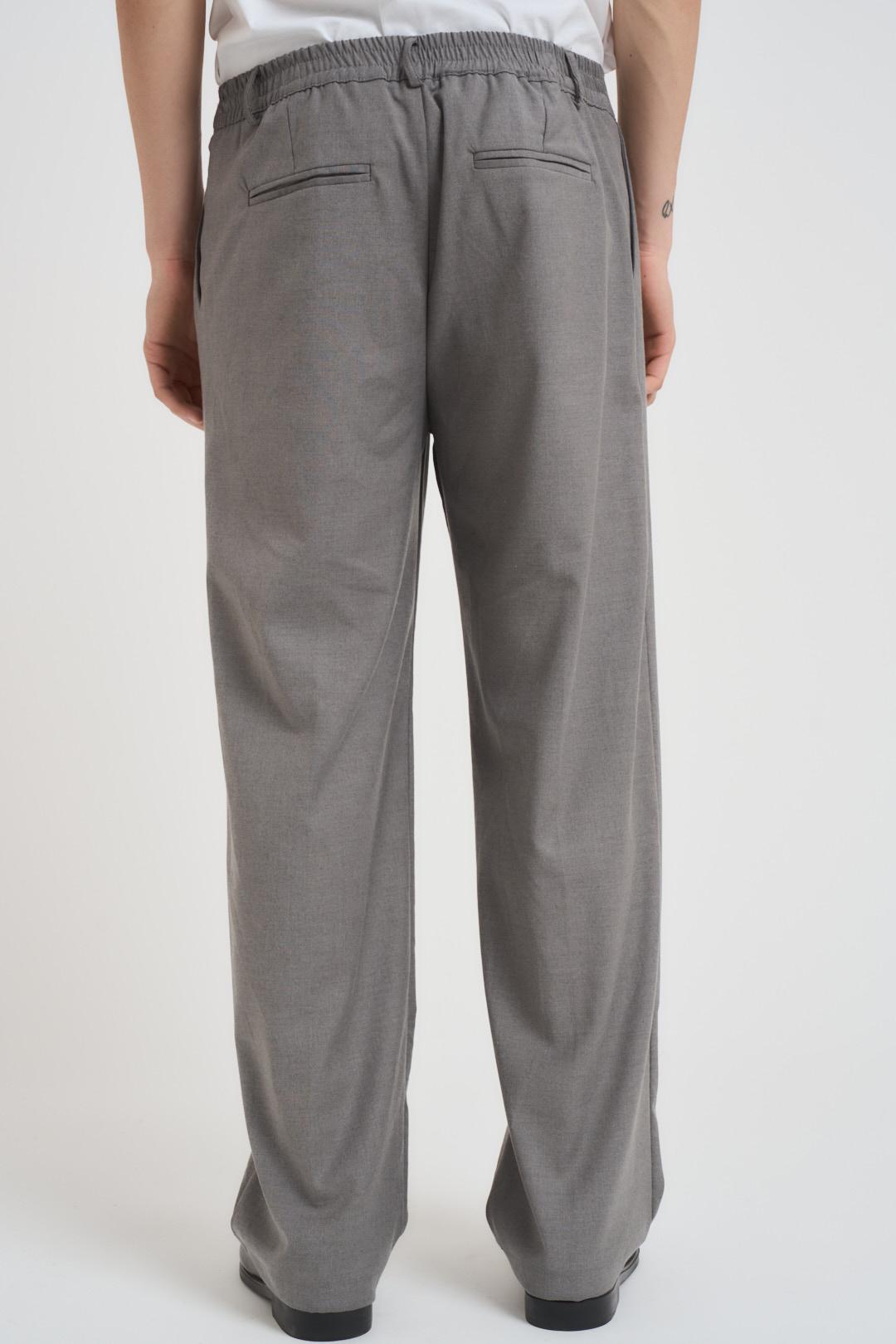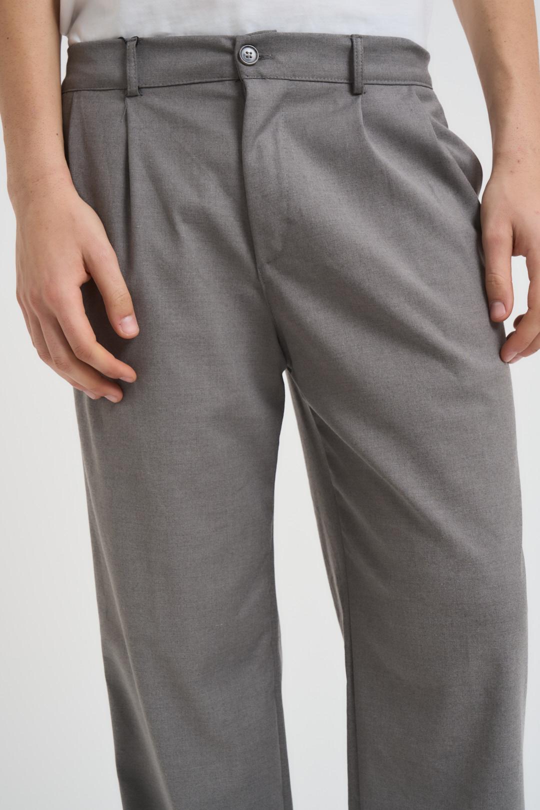 MAIN DELUXE Pantalone uomo gamba dritta grigio. Modello con passanti in vita, chiusura con zip e bottone. Due tasche a filetto. Composizione: cotone e poliestere. Il modello è alto 190cm e indossa la taglia 50.
