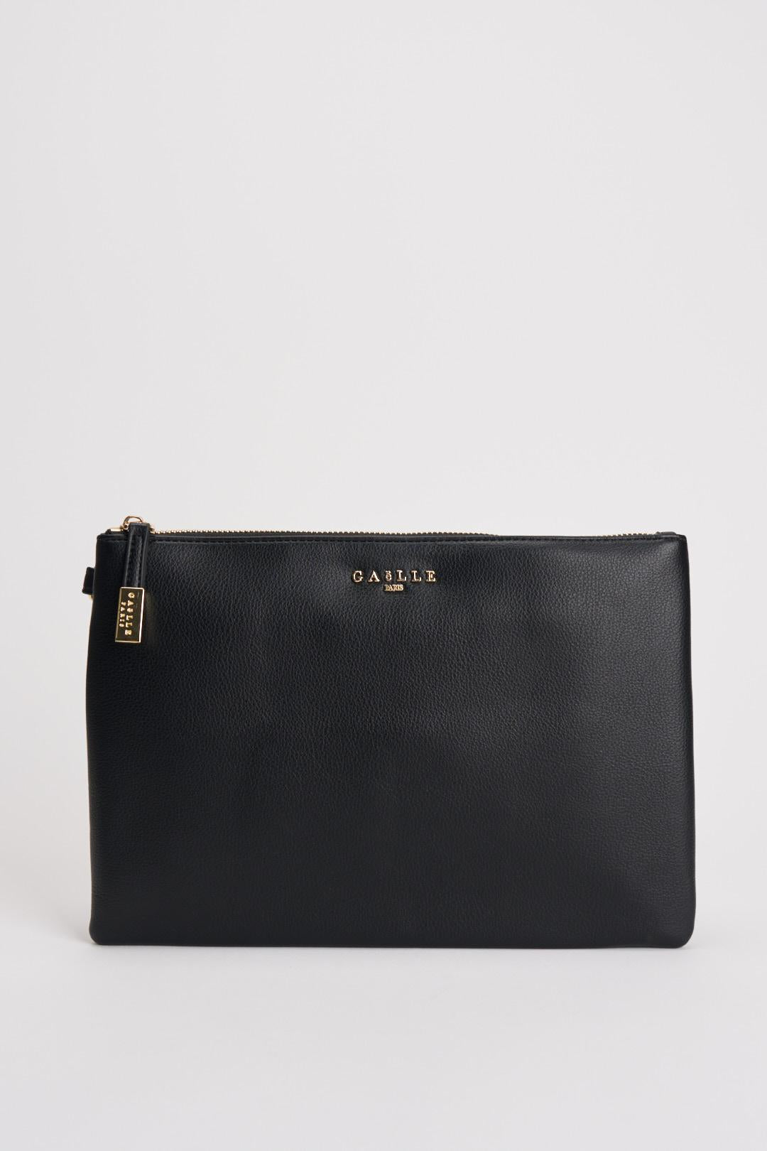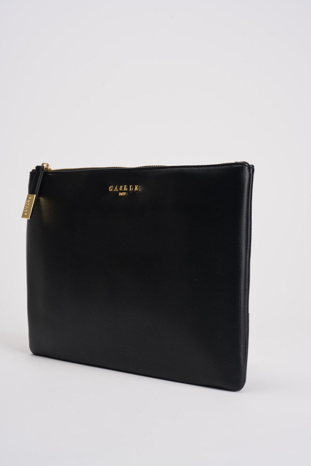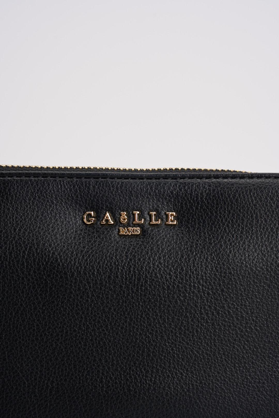 GAELLE Pochetta donna nera. Modello a mano con chiusura a zip. Logo sul davanti dorato e polsino nero. Composizione: 100% Poliuretano. Dimensioni: 29x20x1 cm