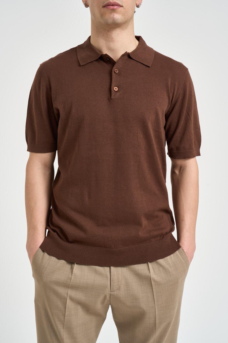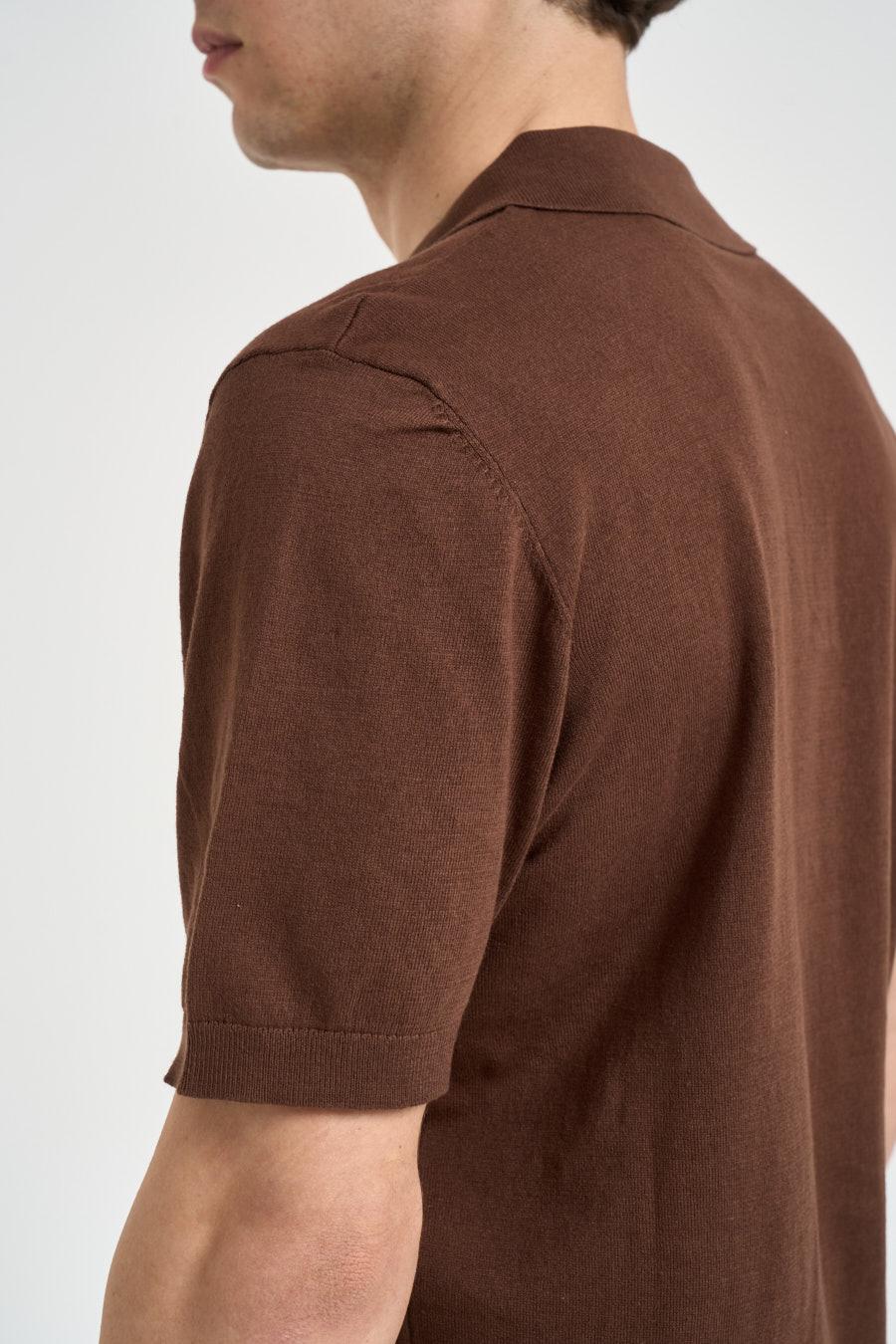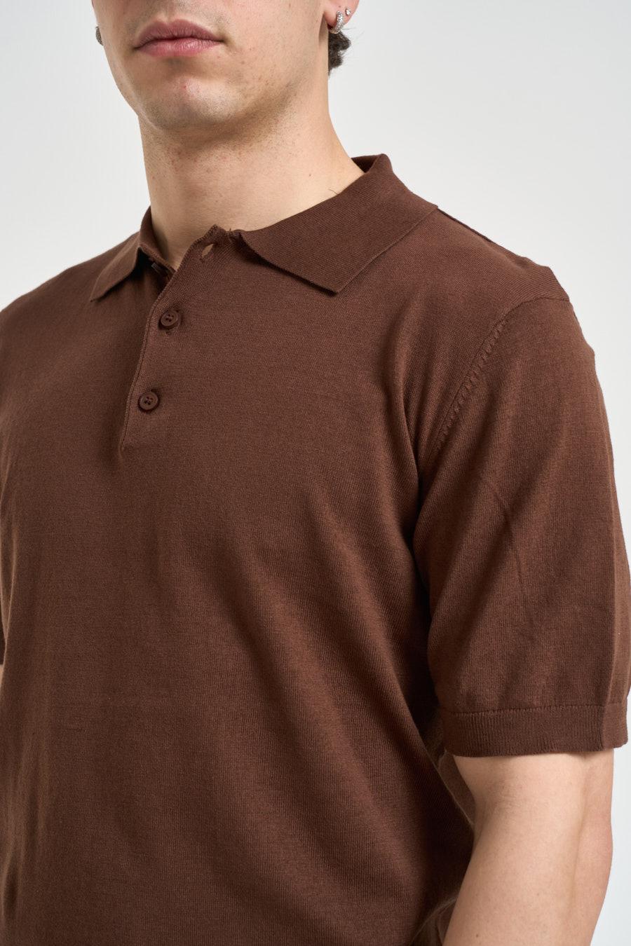 SEINSE Polo uomo a manica corta tabacco. Modello regular fit. Chiusura con bottoni. Colletto classico. Dettagli a costine. Composizione: 100% cotone. Il modello è alto 190 cm e indossa la taglia L.