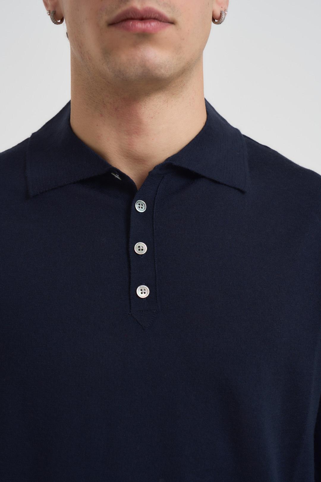 OUTFIT Polo uomo a manica lunga blu notte. Modello regular fit. Colletto classico. Manica lunga. Polsini e fondo a costine. Composizione: %. Il modello è alto 190 cm e indossa la taglia L.