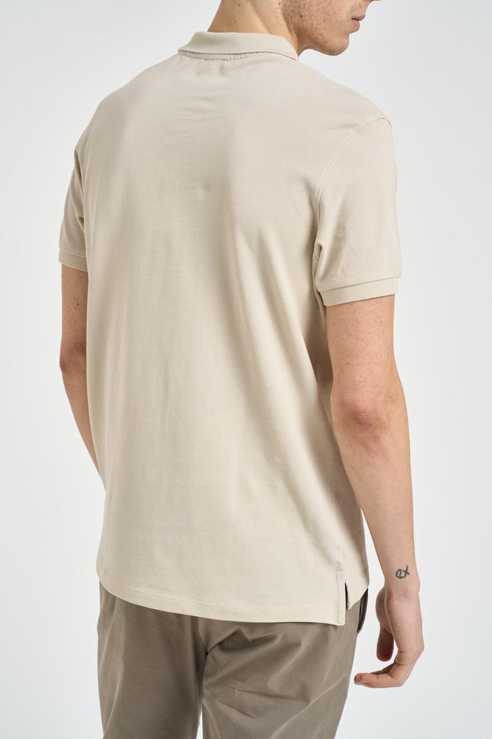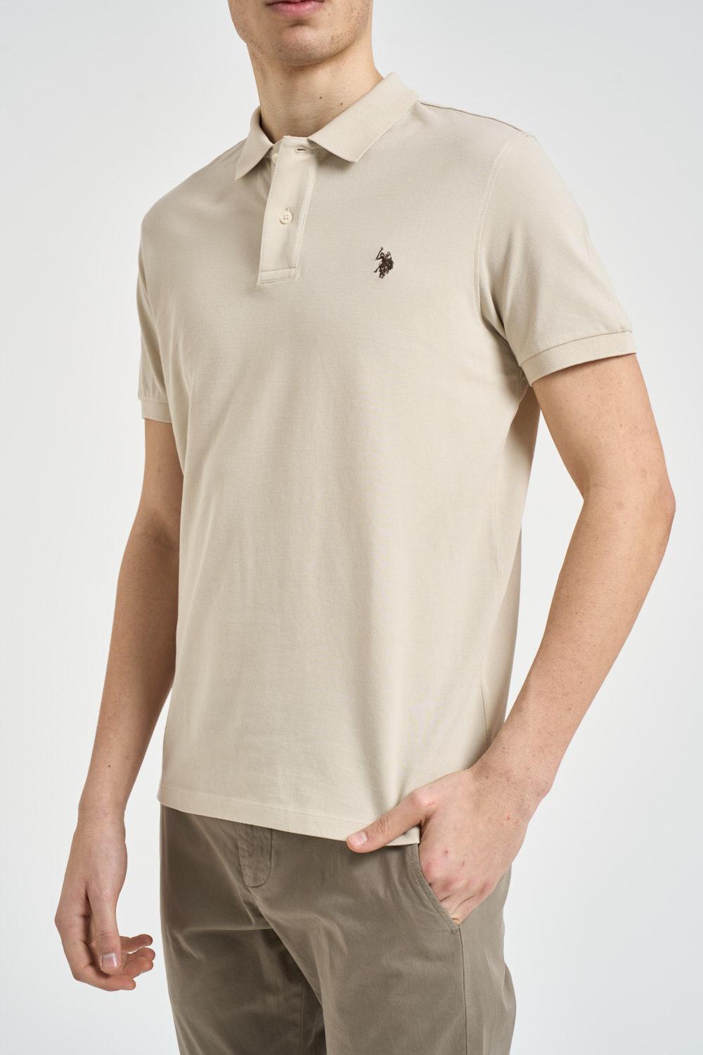 U.S. POLO Polo uomo sabbia. Modello a manica corta classico con colletto a polo e chiusura frontale con bottoni. Realizzata in tessuto piqué di cotone, dettaglio iconico con logo in verde ricamato a contrasto sul petto. Finiture con colletto e bordo maniche a costine e piccoli spacchi laterali sul fondo. Composizione: 100% cotone. Il modello è alto 190 cm e indossa la taglia L.