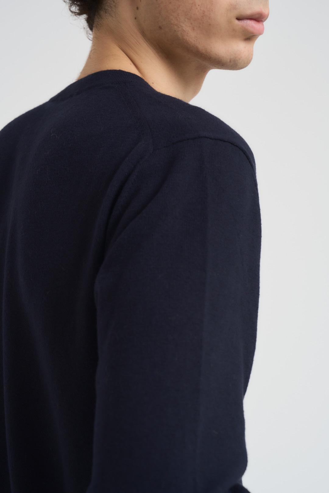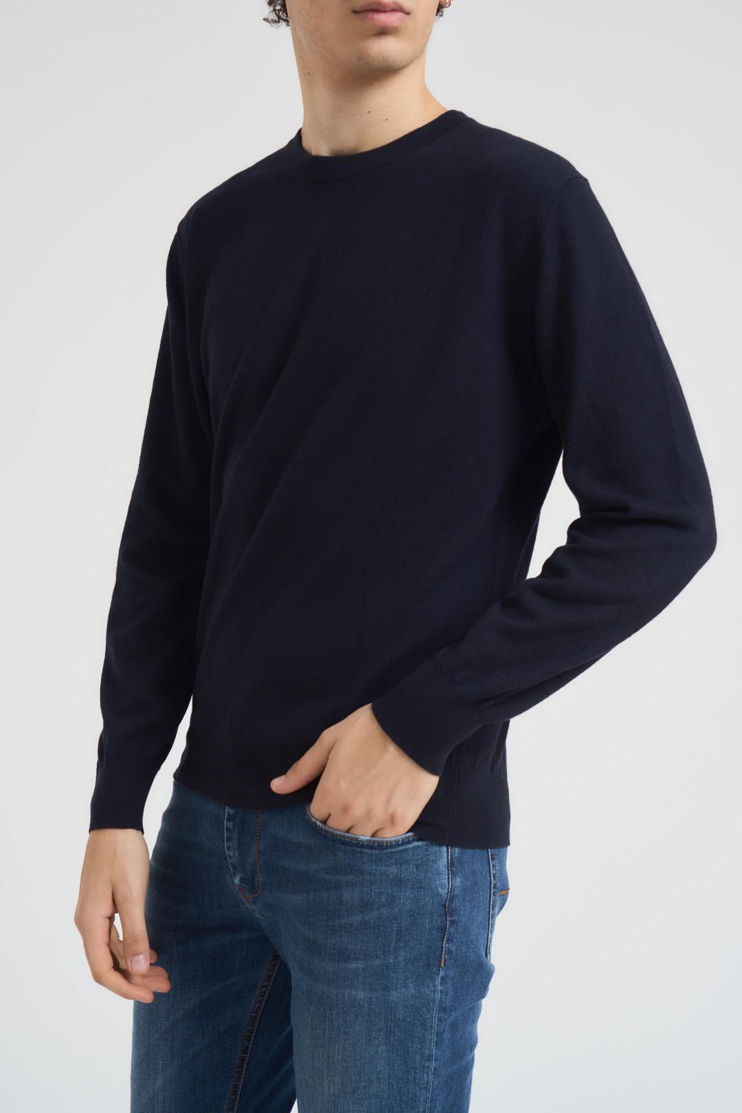 KANGRA Pullover basic uomo. Modello con collo tondo, maniche lunghe. Composizione: 100% cotone. Colore: sabbia. Il modello è alto 190 cm e indossa la tg 48.