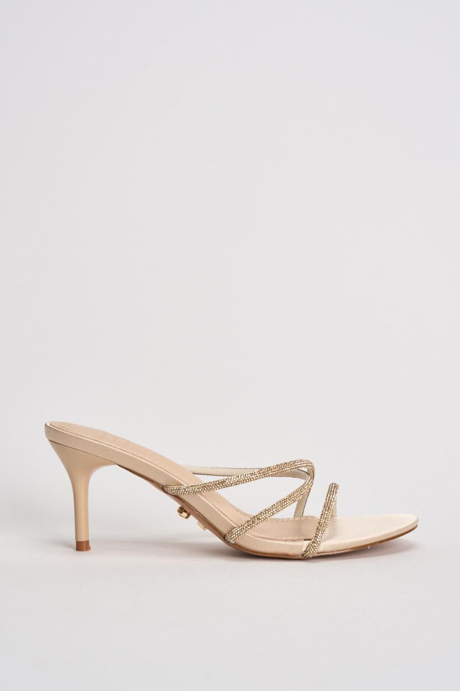 TWENTY FOURHAITCH Sandali donna con strass oro. Modello Lovers in tessuto spalmato con cristalli, punta tonda e senza chiusura. Composizione: pelle e poliestere. Calzata regolare.