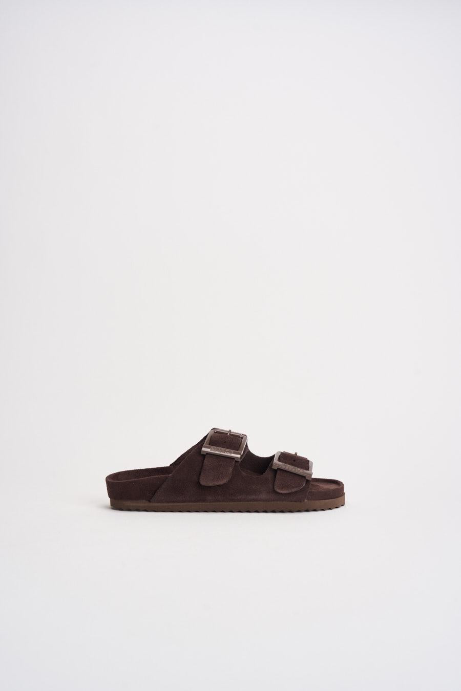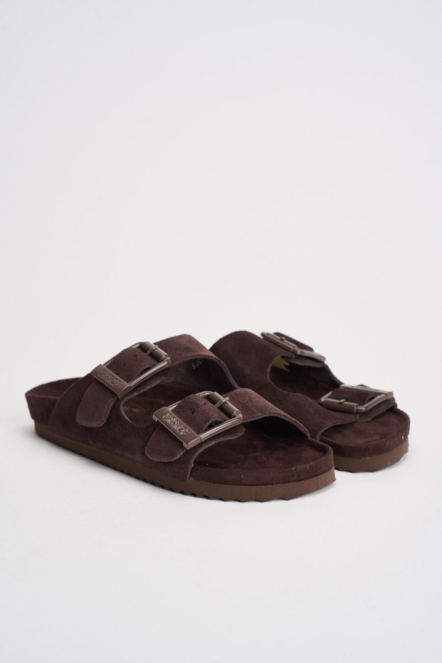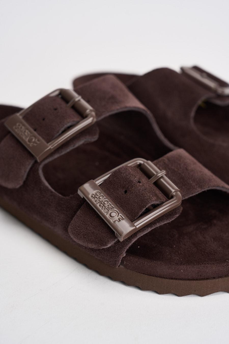COLORS OF CALIFORNIA Sandalo donna in suede marrone. Modello Arizona con fibbie tono su tono. Tomaia: 100%camoscio. Sottopiede: 100% poliestere. Suola: 100% EVA. Altezza suola: 3 cm. Calzata regolare.