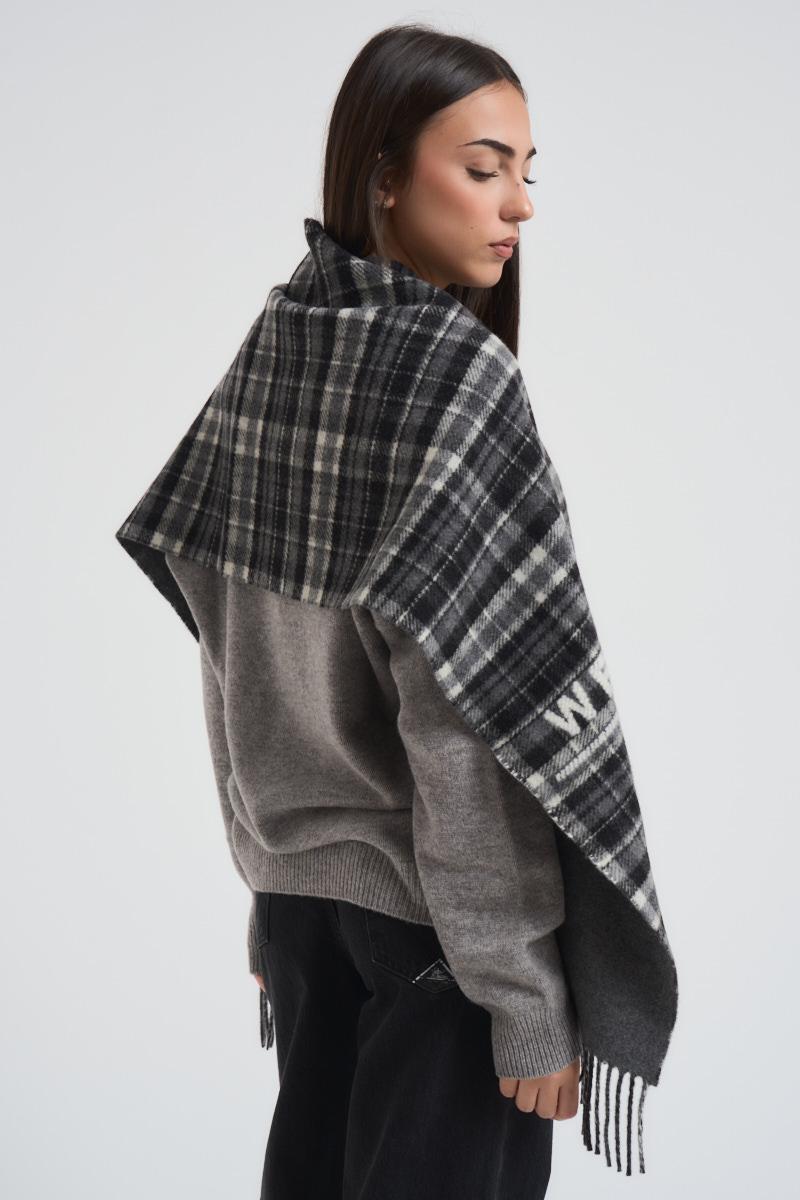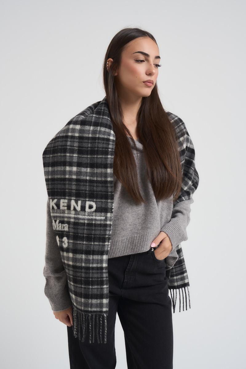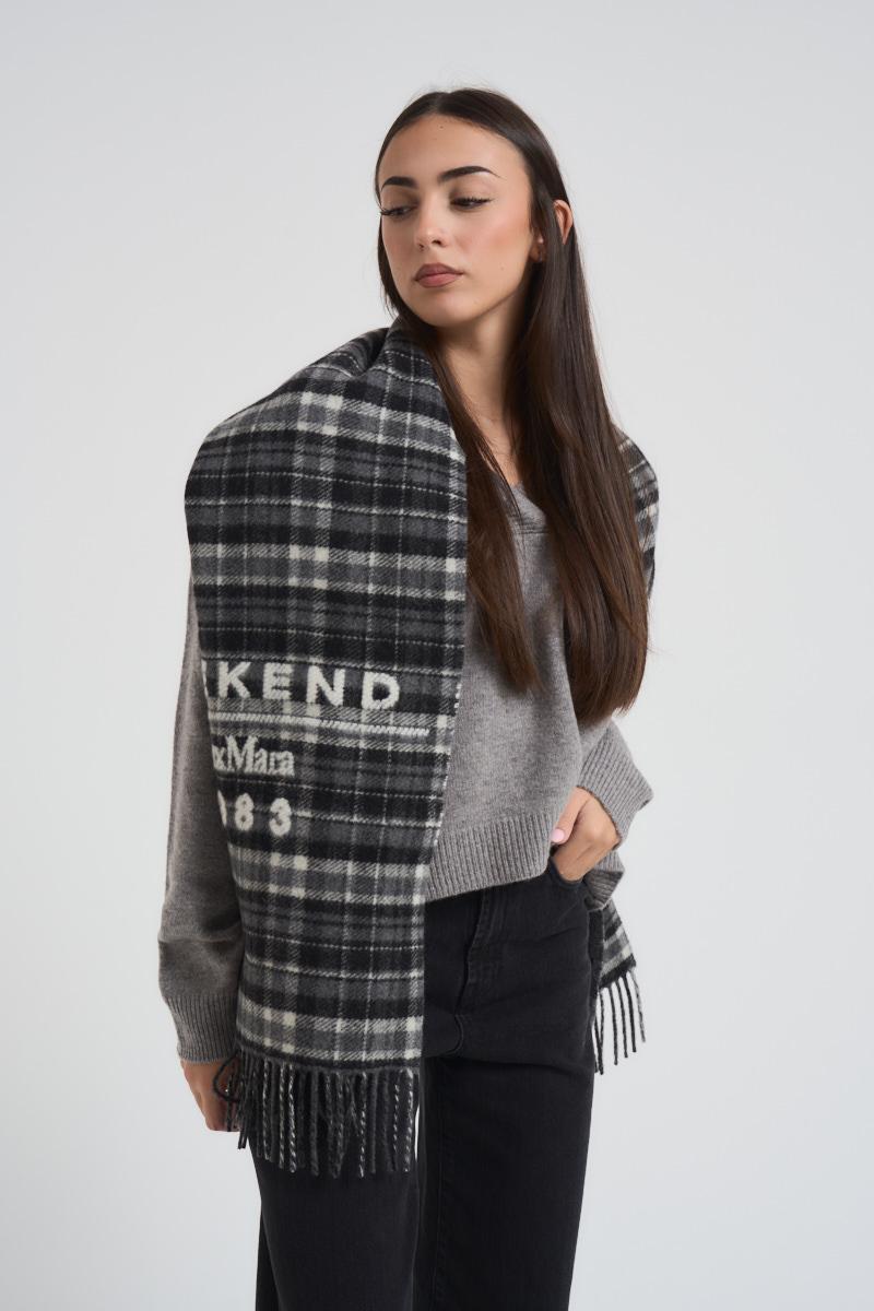 MAX MARA WEEKEND Sciarpa donna Pagella grigia. Modello con fantasia a scacchi e frange. Composizione: 97% Lana 3% Poliammide. Larghezza: 40 cm Lunghezza: 160 cm
