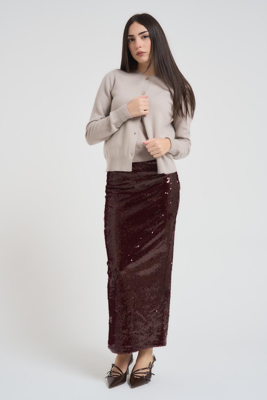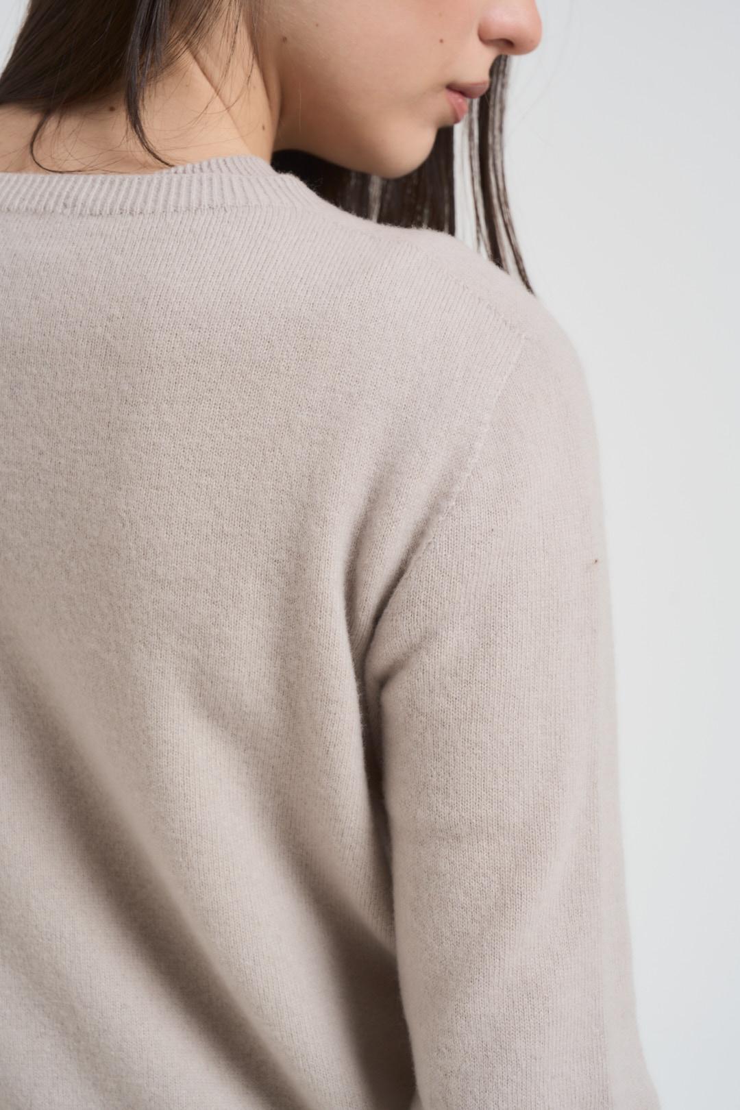 KAOS Set cardigan donna e t-shirt gesso. Modello a girocollo in maglia. Collo, polsini e bordo rifiniti a coste. Composizione: 100% Lana. La modella è alta 172 cm e indossa la taglia S.