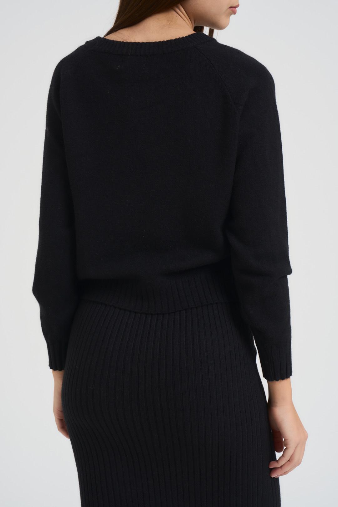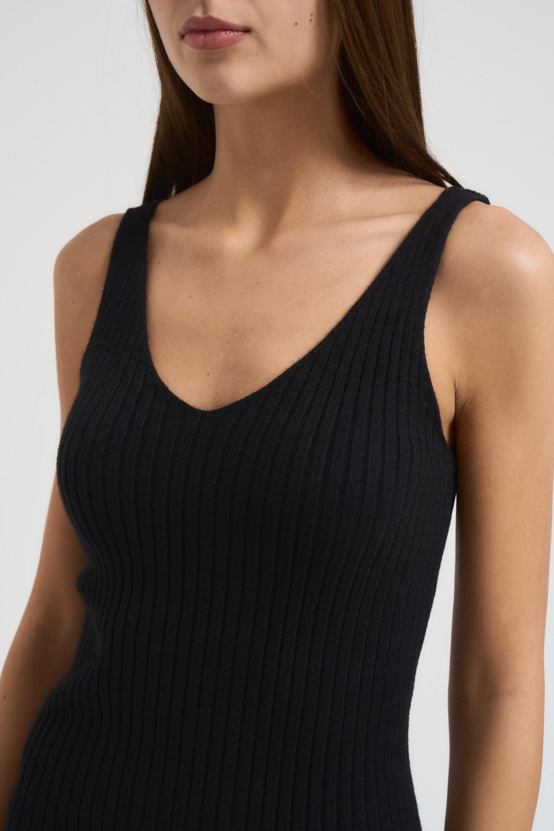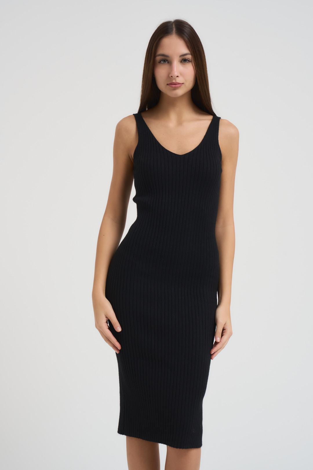 SUSY MIX Set coordinato donna nero. Modello composto da abito midi in maglia a coste con scollo a V. Maglia scollo a barchetta e maniche lunghe con orli a costine. Composizione: 50% viscosa, 28% poliestere. La modella è alta 176 cm e indossa la taglia UNI.