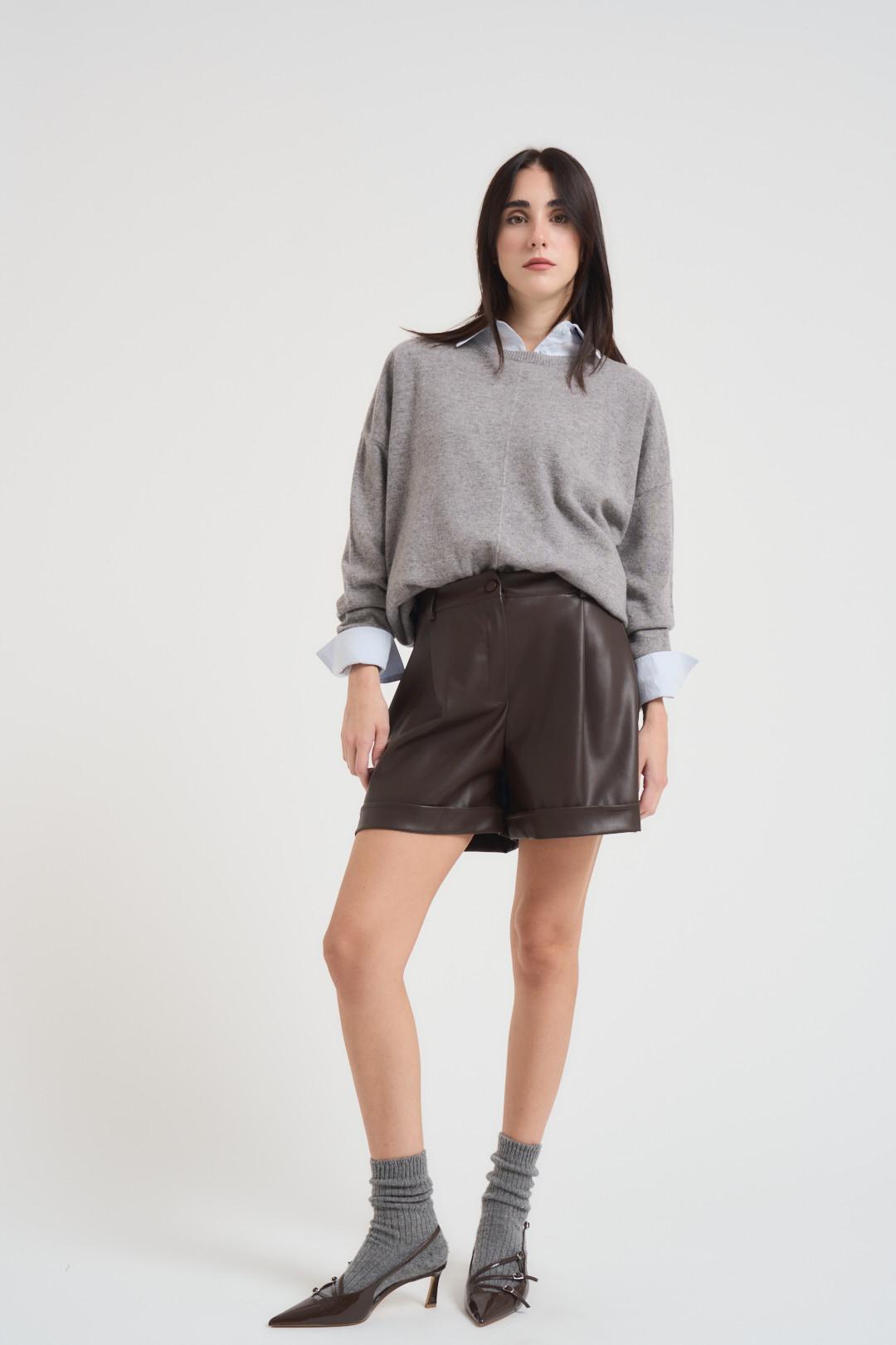 LOKITA MILANO Short donna in ecopelle moro. Modello con pence. Chiusura con zip nascosta e bottone. Passanti per cintura. Risvolto sul fondo. Composizione: 100% Poliestere. La modella è alta 175 cm e indossa la taglia S.