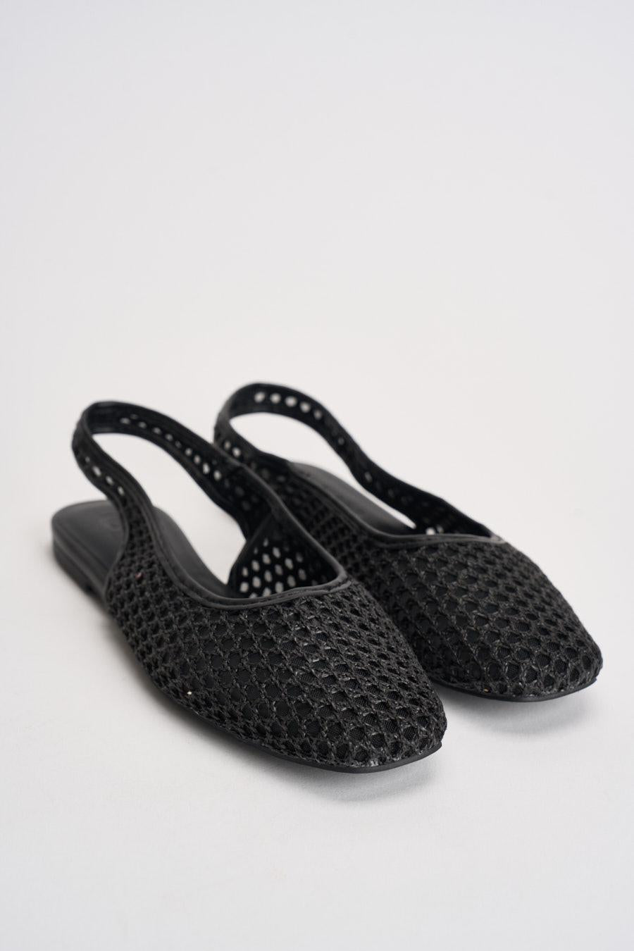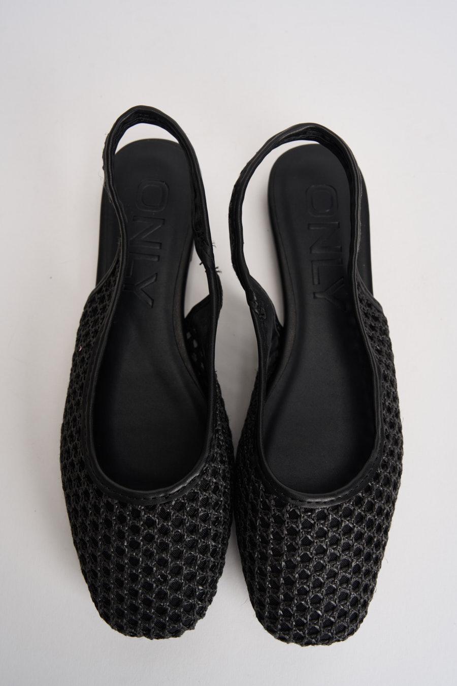 ONLY Slingback donna in rete nera. Modello ballerina con cinturini elasticizzato, punta tonda. Composizione: 100% Poliestere. Calzata regolare.