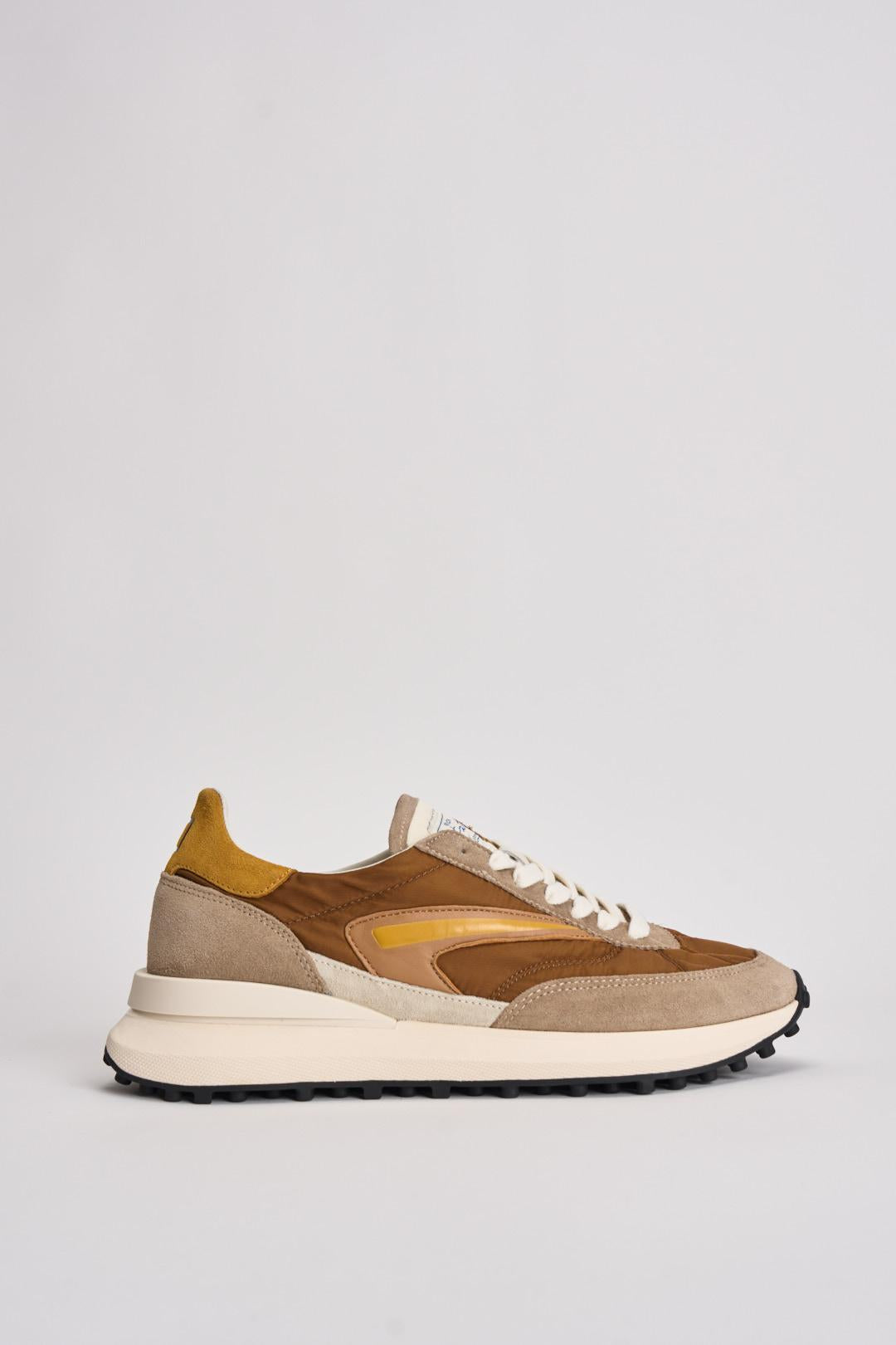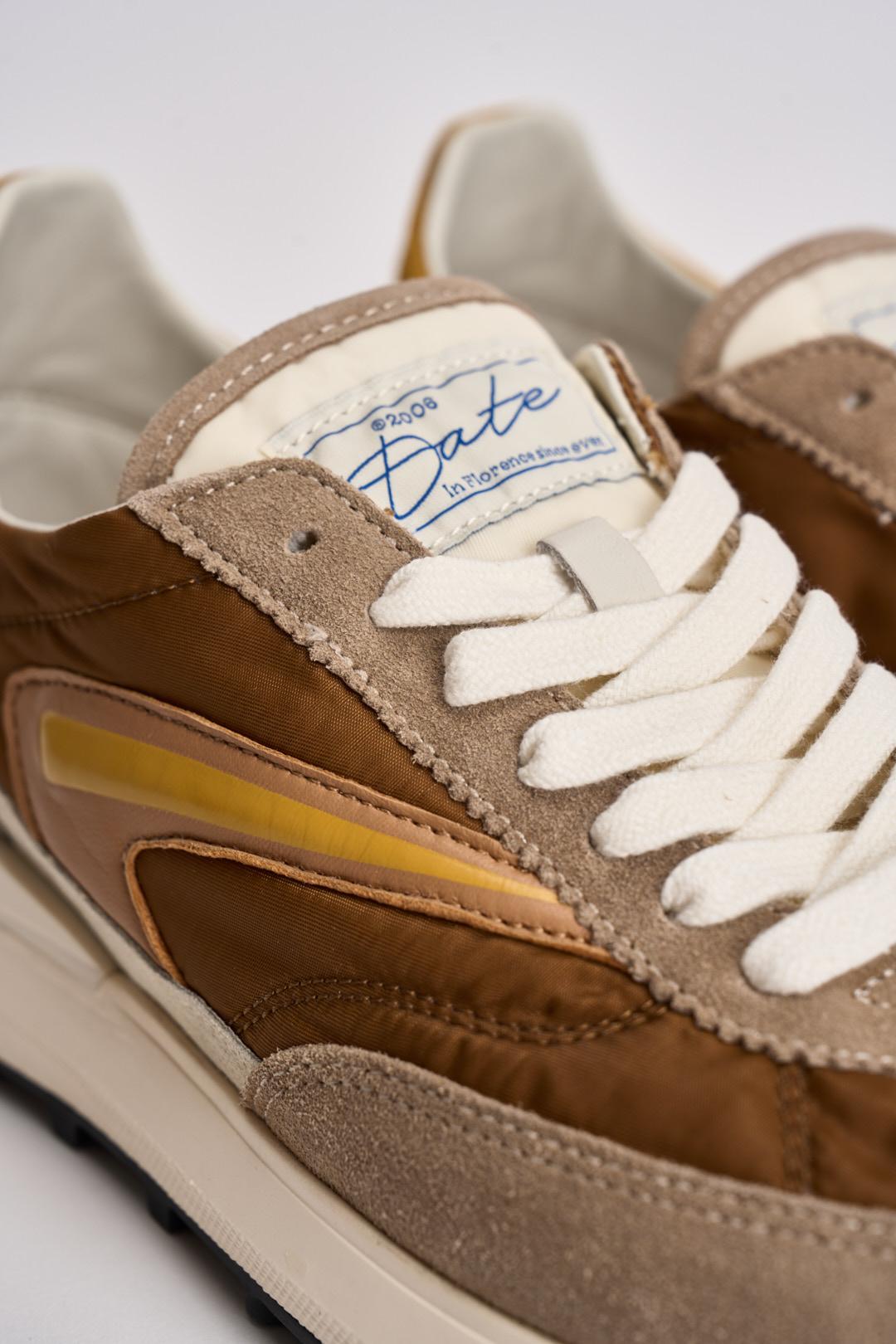 D.A.T.E Sneakers Athleta nylon uomo. Patch cucita sulla linguetta con scritta D.A.T.E. impressa. Lacci in cotone.Dettaglio laterale impresso colore canna di fucile. Fodera in pelle e spugna di cotone.Il soletto interno è rialzato di 2.5 cm per un migliore comfort. La suola in gomma alta 2 - 3,5 cm.Tutti i materiali selezionati sono Made in Italy. Calzata: regolare. Colore: cammello, sabbia e giallo ocra.
