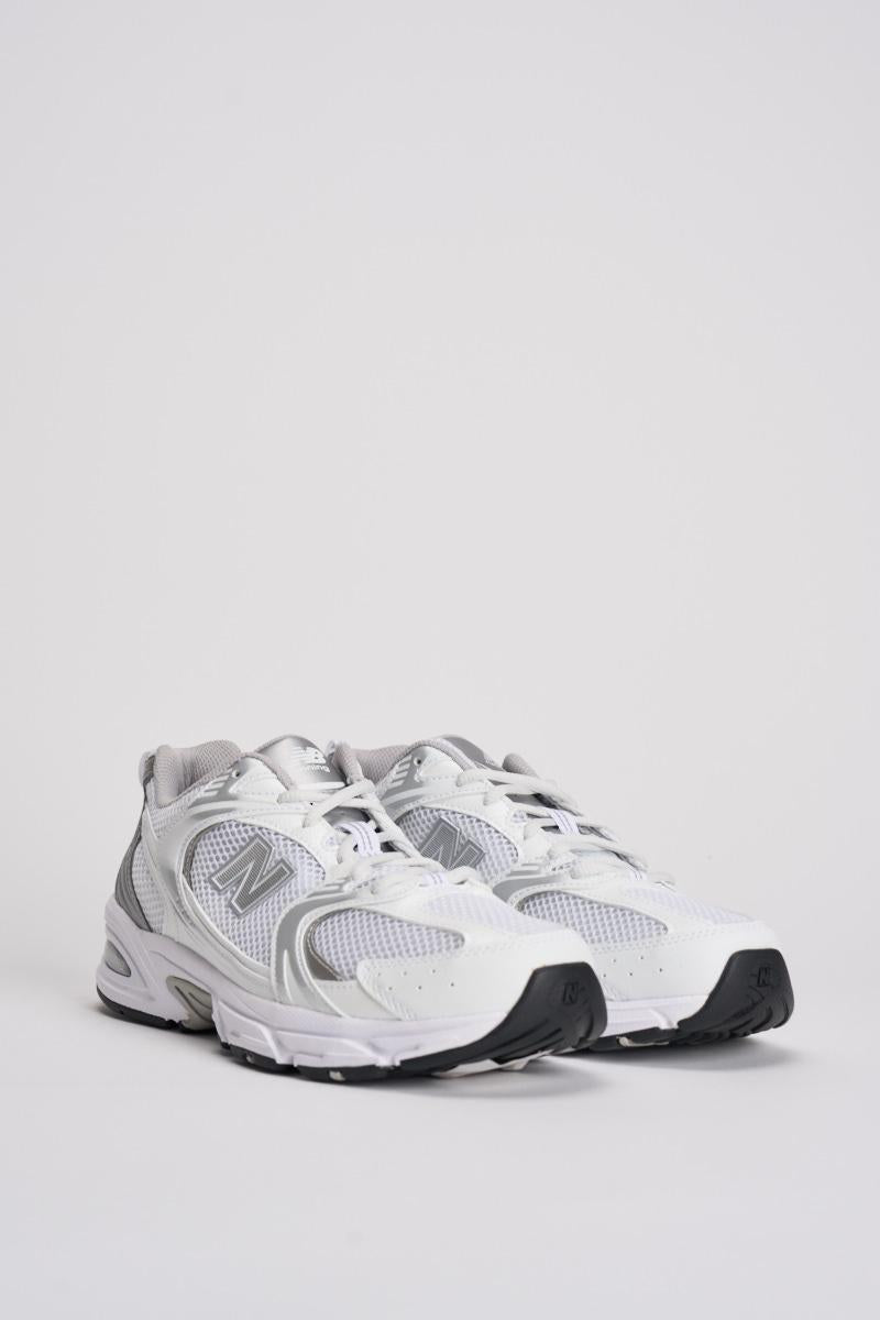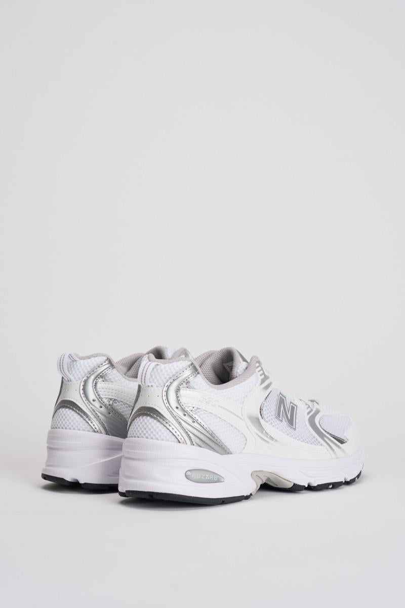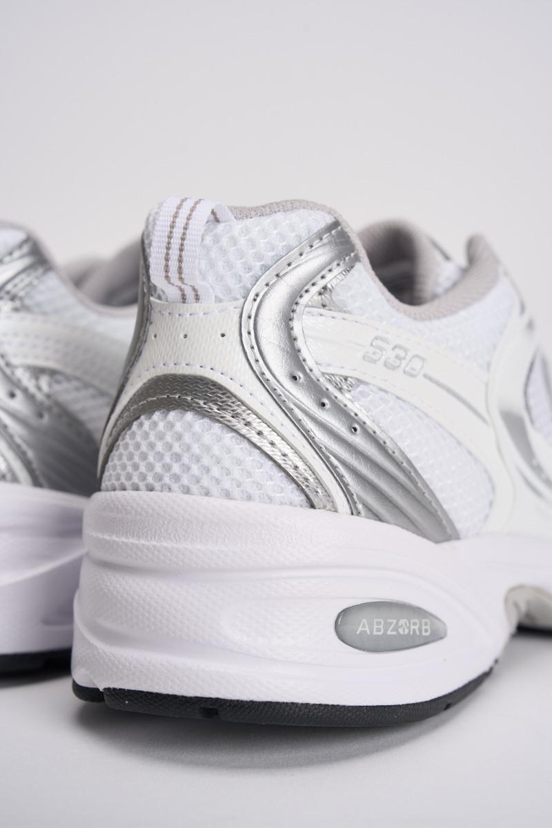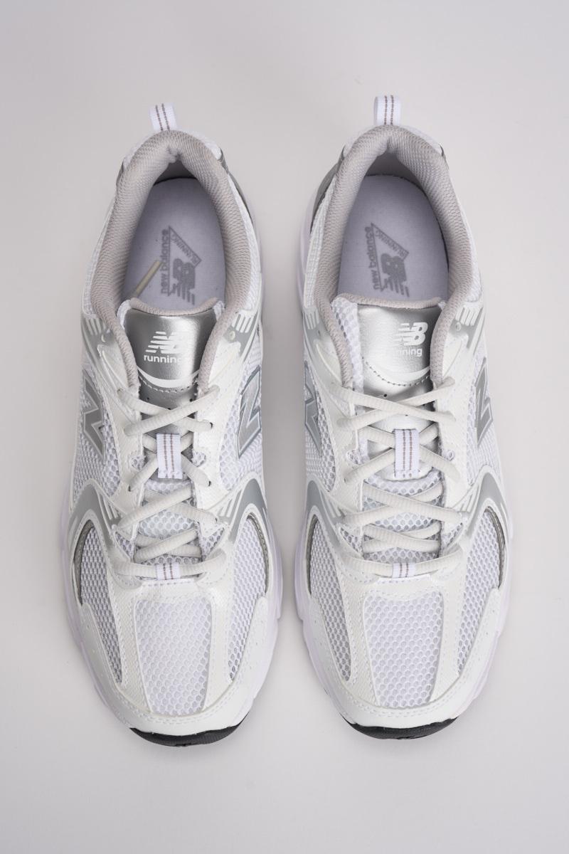 NEW BALANCE Sneakers donna 530 bianche. Tomaia in mesh e materiale sintetico. Dettagli di colore argento. Chiusura con lacci. Stile da running. Ammortizzazione ABZORB. Calzata regolare.
