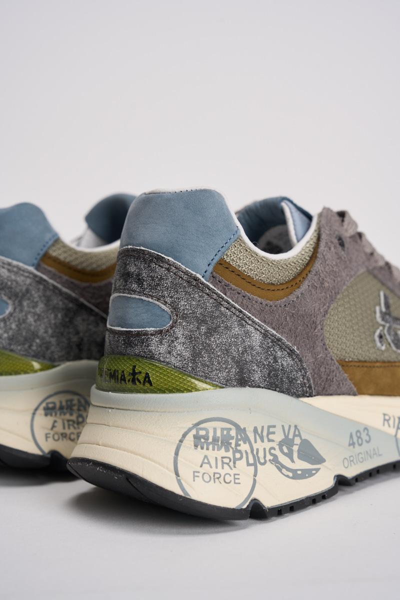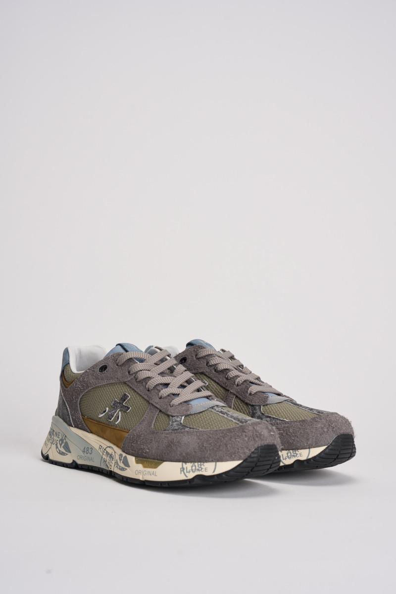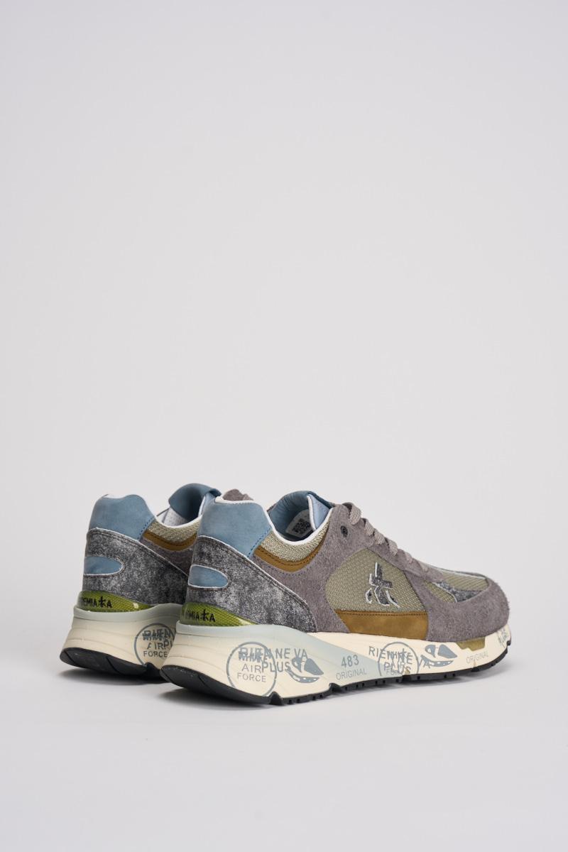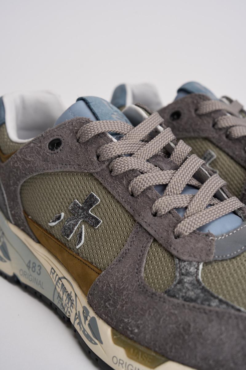 PREMIATA Sneakers mase uomo. Prodotte con materiali italiani di ottima fattura, sono realizzate in suede con inserti in pelle. Caratteristica principale l'insolita intersuola stampata dal twist unico con plateau per slanciare la silhouette. Completa il design esclusivo l'iconico logo laterale. Composizione: 80% eva, 20% gomma 15% pelle. Fodera: 86% pelle 14% pu. Altezza suola 4,2 cm.