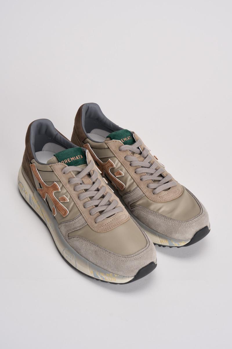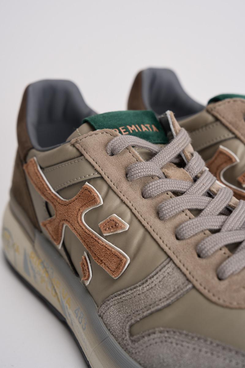 PREMIATA Sneakers Mick uomo. Prodotte con materiali italiani di ottima fattura, sono realizzate in suede con inserti in pelle. Caratteristica principale l'insolita intersuola stampata dal twist unico con plateau per slanciare la silhouette. Completa il design esclusivo l'iconico logo laterale. Composizione: 80% eva, 20% gomma 15% pelle. Fodera: 86% pelle 14% pu. Altezza suola 4,2 cm.