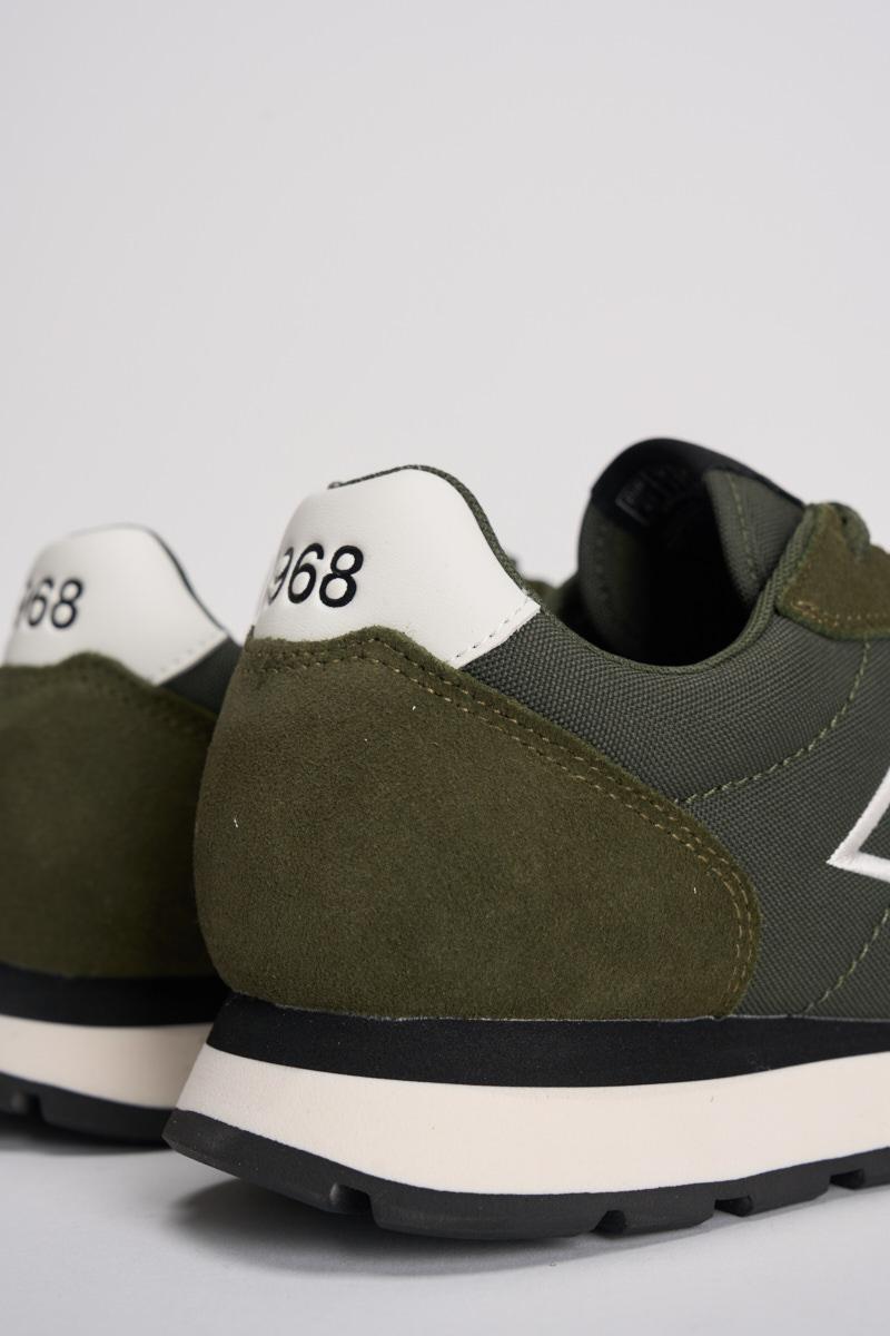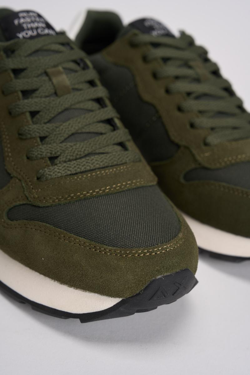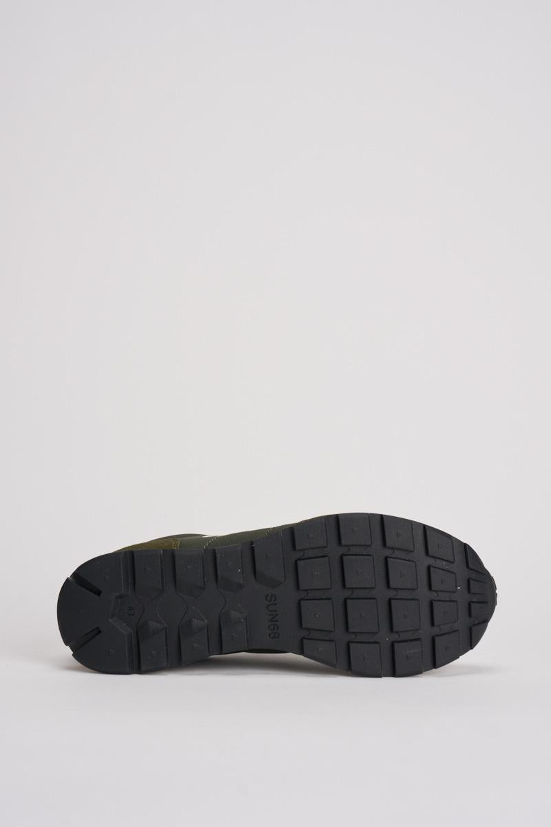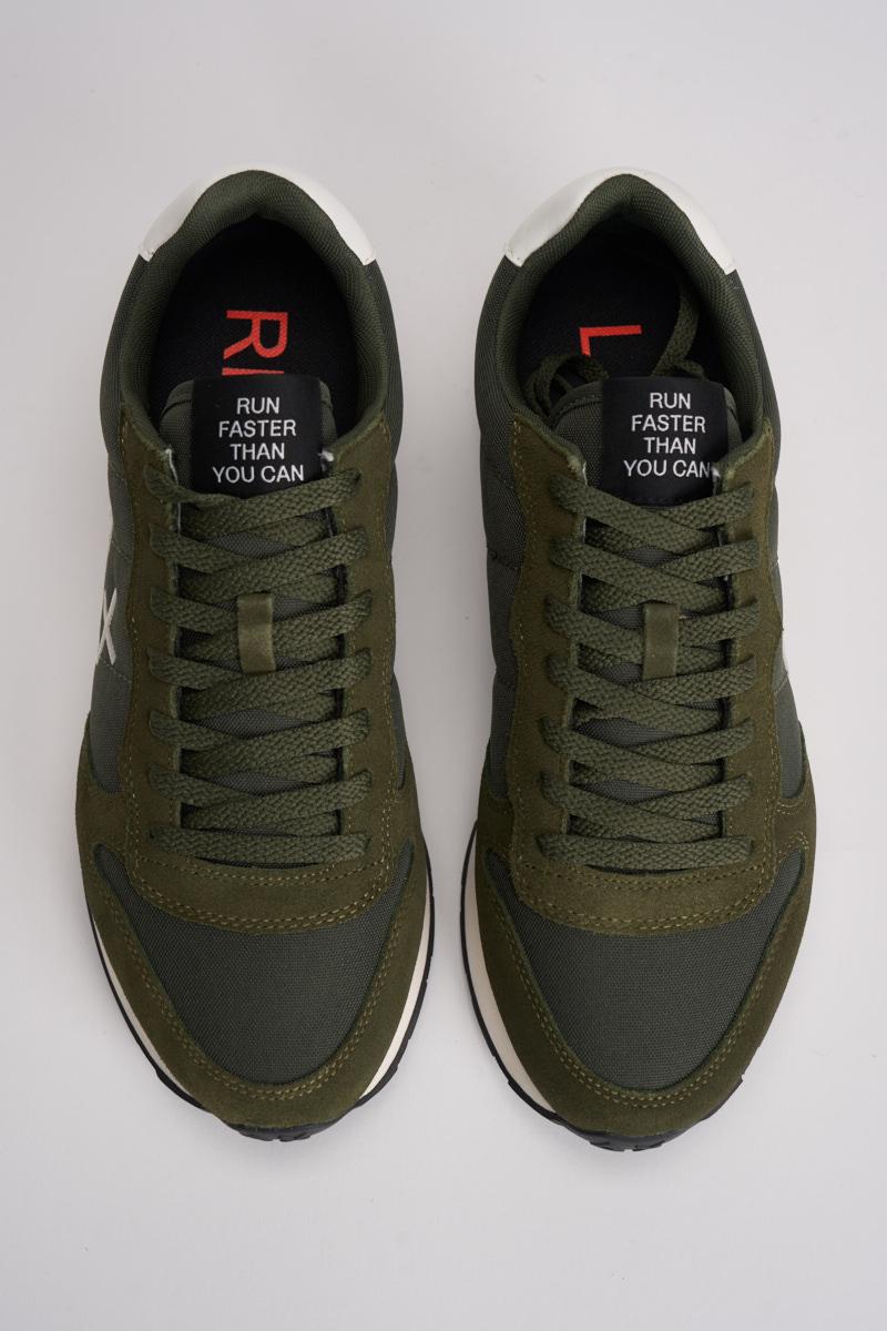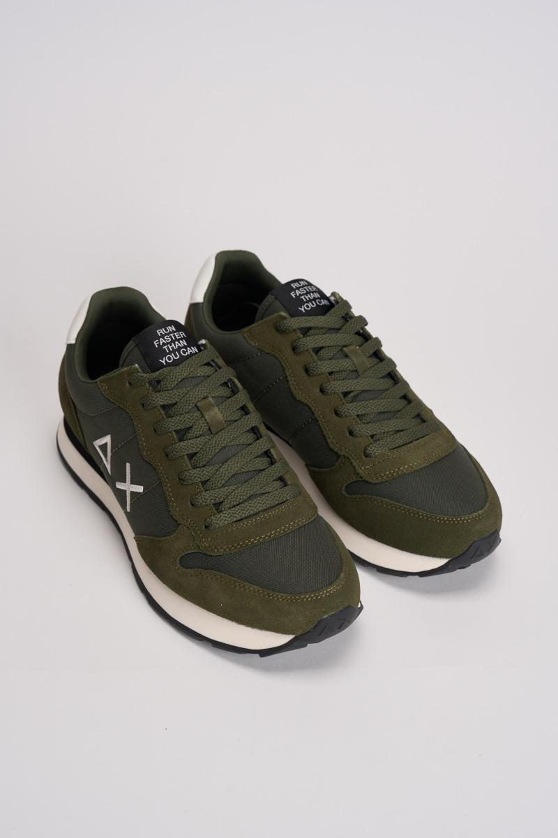 SUN68 Sneakers Tom Classic uomo. a sneaker Tom Classic ha un design running leggero per il massimo comfort e un'estetica sobria. Logo laterale. Realizzata in pelle con dettagli in suede. Chiusura con lacci in cotone. Logo ricamato sul lato. Suola in EVA. Colore: verde militare e grigio.
