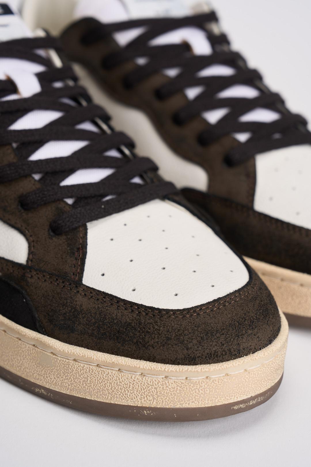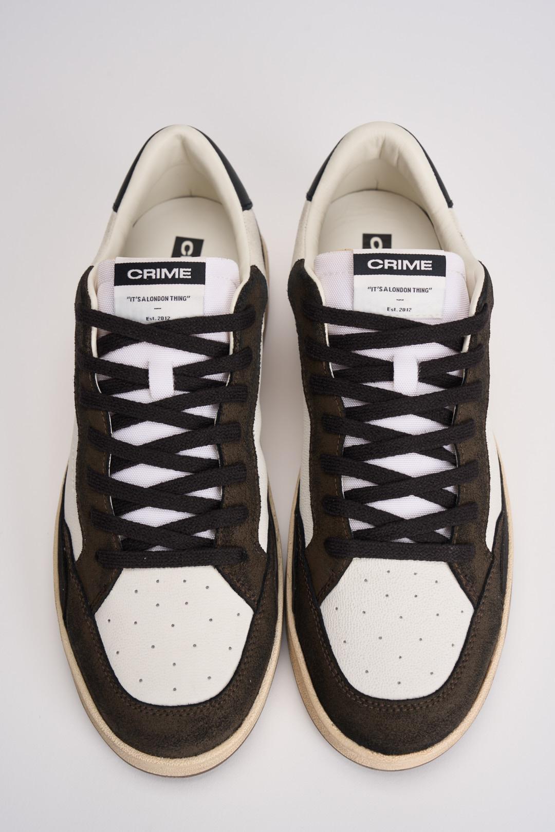 CRIME LONDON Sneakers uomo bianca e suede testa di moro. Modello in pelle bianca con dettagli marroni e beige, suola in gomma, talloncino in pelle liscia marrone, stampa brand sul tallone in rosso. Calzata regolare.