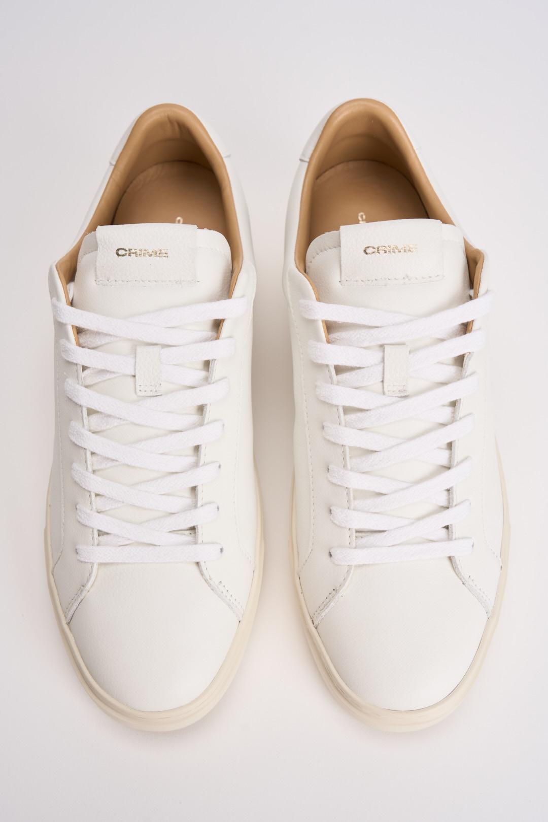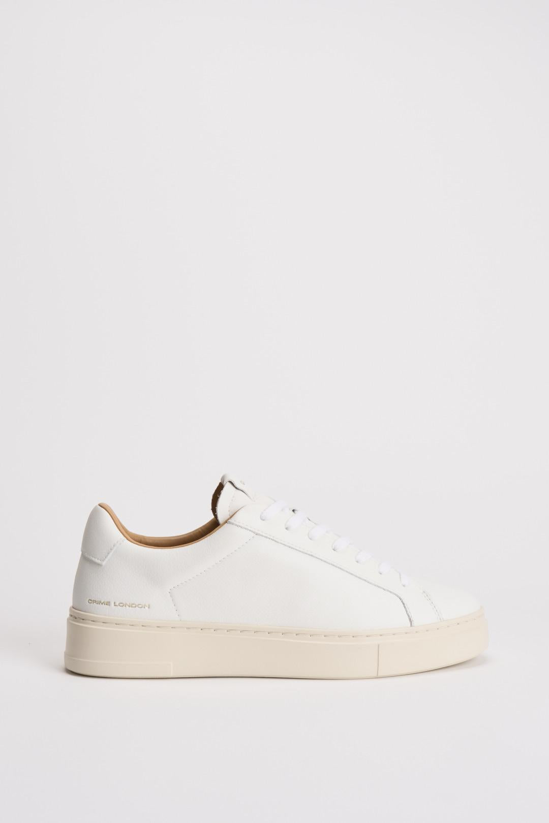 CRIME LONDON Sneakers uomo in pelle bianche. Modello in pelle con plantare estraibile e suola extralight® cucita in gomma. Linguetta con label in pelle logata. Calzata regolare.