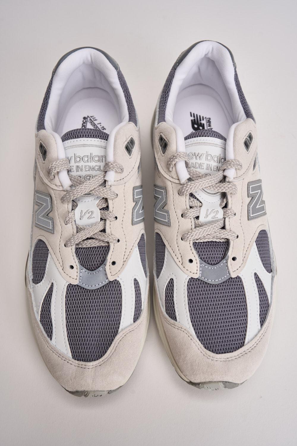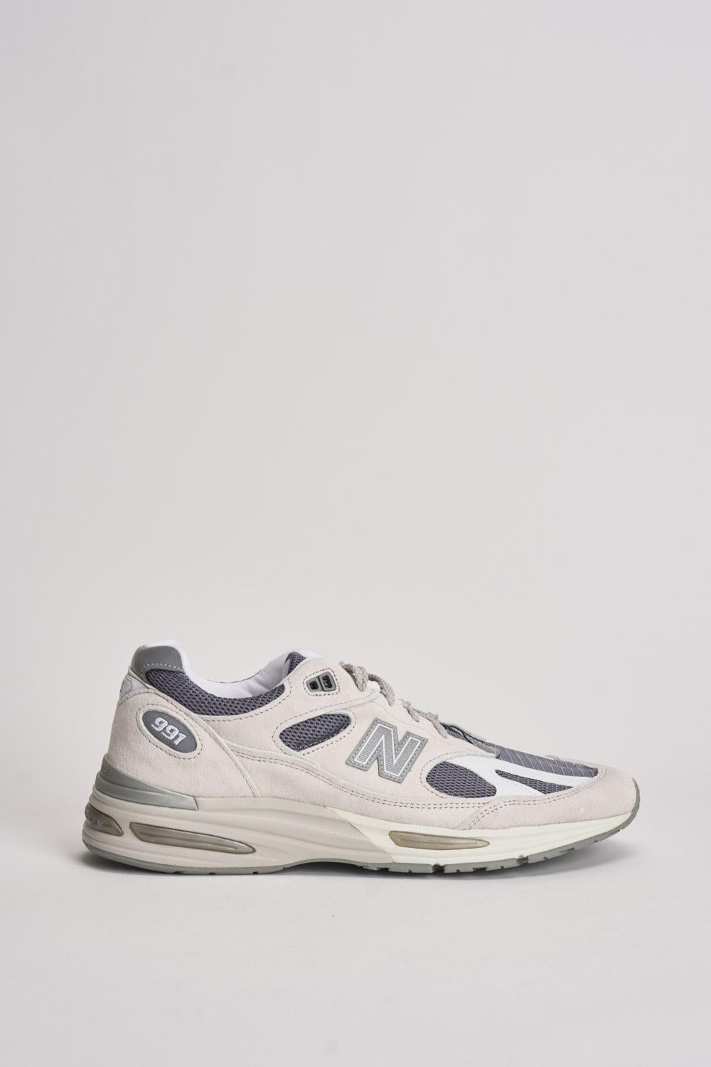 NEW BALANCE Sneakers uomo Made in UK 991v2 grigio. Modello Intersuola Full-Length FuelCell, logo "N" con dettagli in rilievo e capsule ABZORB SBS semitrasparenti. Suola ammortizzata che abbina una schiuma leggera a un bordo in poliuretano durevole. Dettagli rifrangenti. Marchio "v2" ricamato sulla linguetta. Peso: 425.1gr. Calzata regolare.