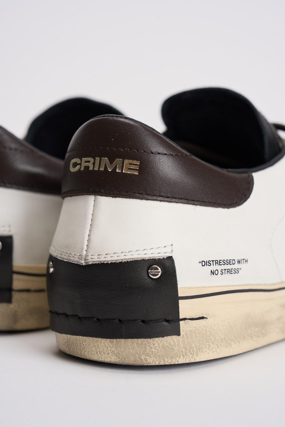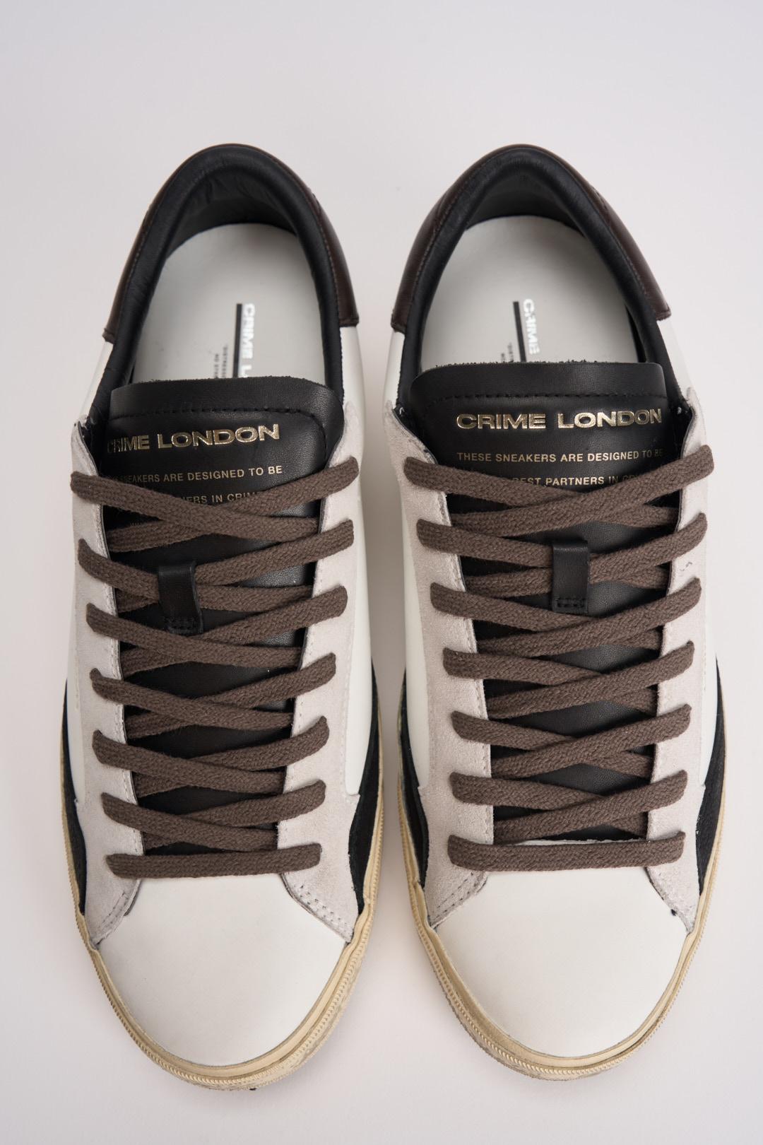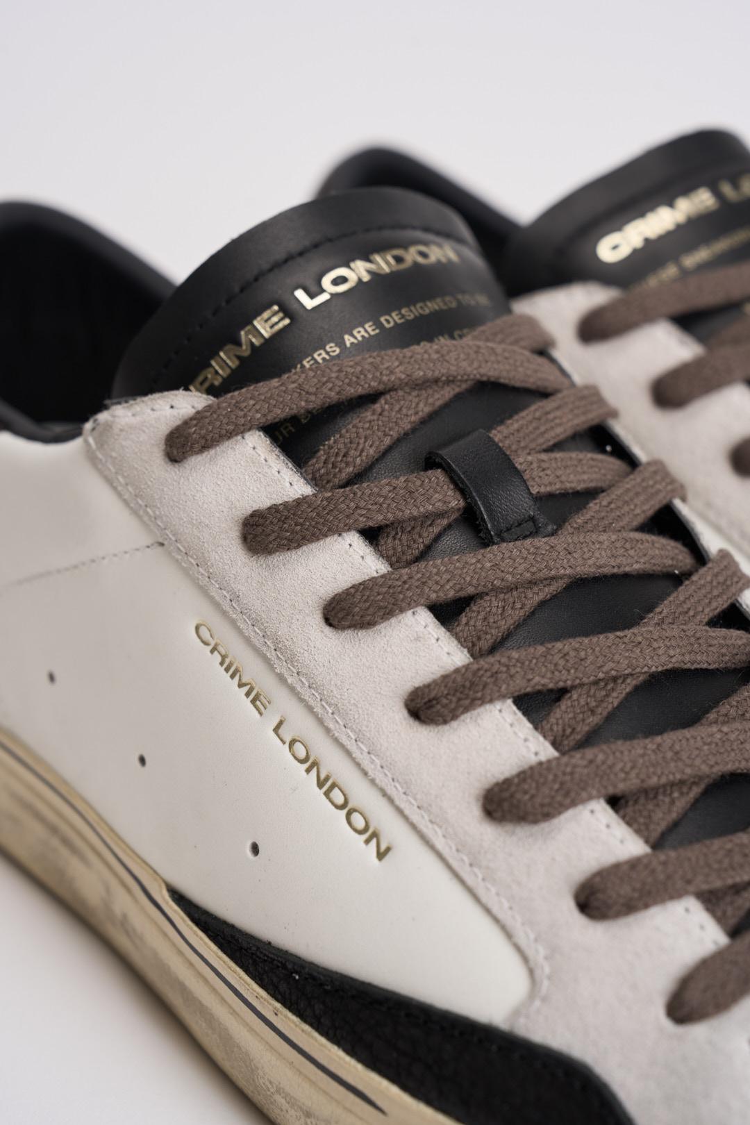 CRIME LONDON Sneakers uomo nera effetto vintage. Modello Distressed 2.0 in pelle liscia e camoscio bianco e nero. Plantare estraibile in pelle e suola in gomma. Composizione: pelle e camoscio. Calzata regolare.