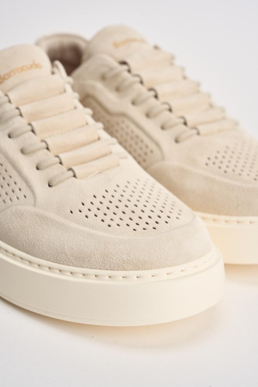BARRACUDA Sneakers uomo Phoenix sabbia. Modello slip-on realizzato in morbido suede color beige che dona al modello un aspetto elegante e versatile. Tomaia traforata sui lati, pensata per garantire maggiore traspirabilità e comfort. Chiusura con lacci tono su tono. Occhielli forati. Linguetta logata sul bordo superiore con passalacci tubolari nella lunghezza. Punta stondata. Tomaia forata sul davanti e sul laterale. Retro caviglia logato. Iconico laccetto arancio al retro. Suola in EVA. Composizione tomaia: in suede. Calzata regolare.