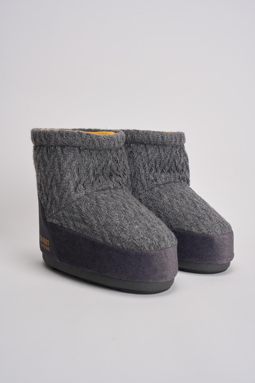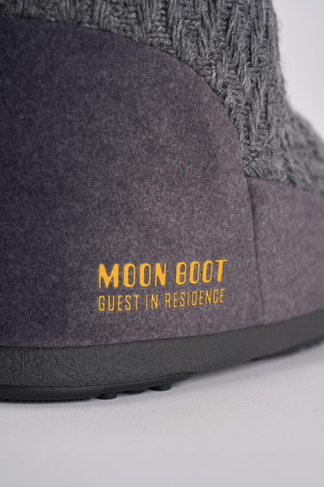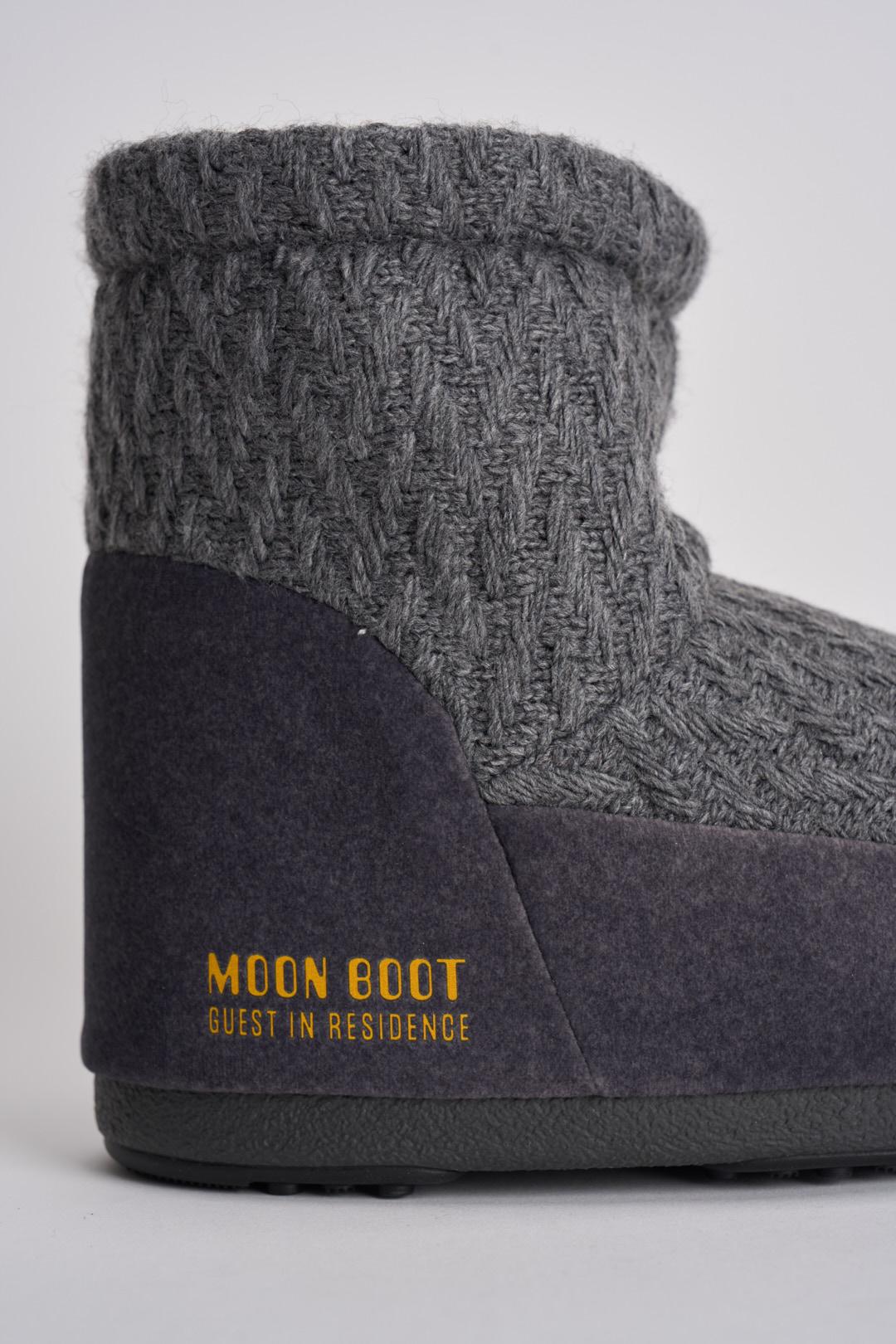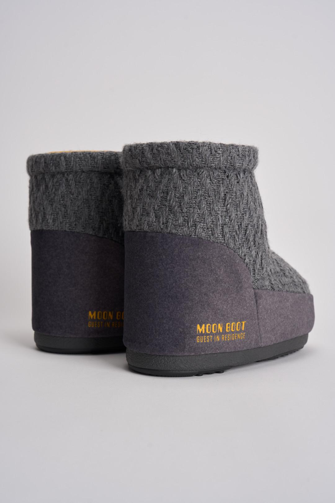 MOON BOOT Stivale donna da neve in maglia grigio. Modello senza lacci in maglia con fantasia a rombi. Imbottitura isolante e suola antiscivolo. Ambidestro. Fascia con logo goffrato posto lateralmente. Tallone e finiture in PVC. Calzata regolare.