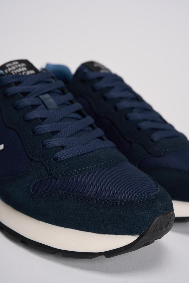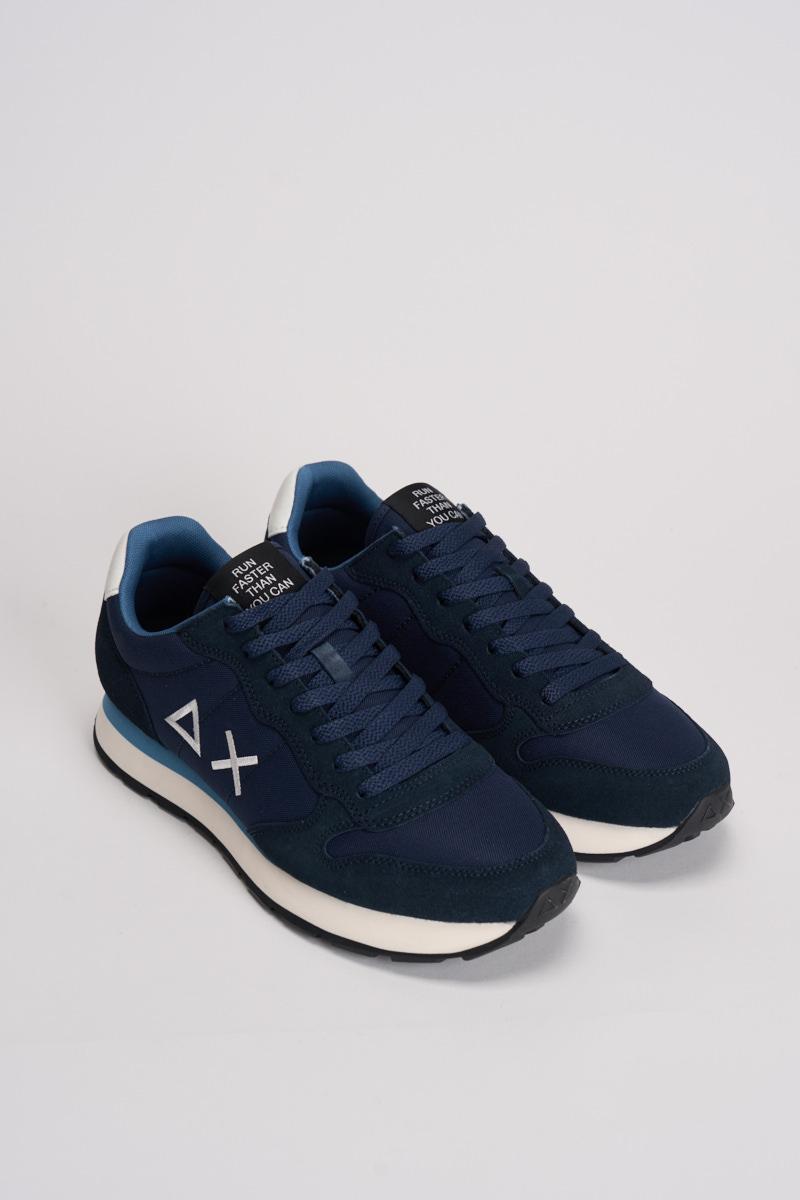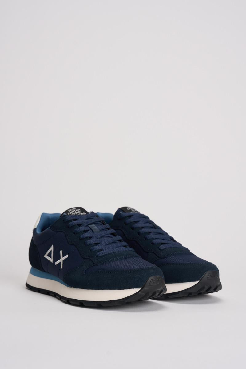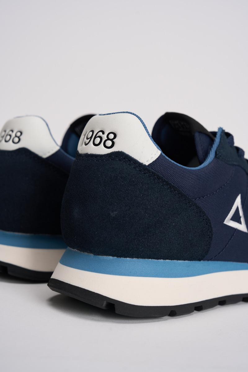 SUN68 Sneakers Tom Classic uomo. a sneaker Tom Classic ha un design running leggero per il massimo comfort e un'estetica sobria. Logo laterale. Realizzata in pelle con dettagli in suede. Chiusura con lacci in cotone. Logo ricamato sul lato. Suola in EVA. Colore: blu.