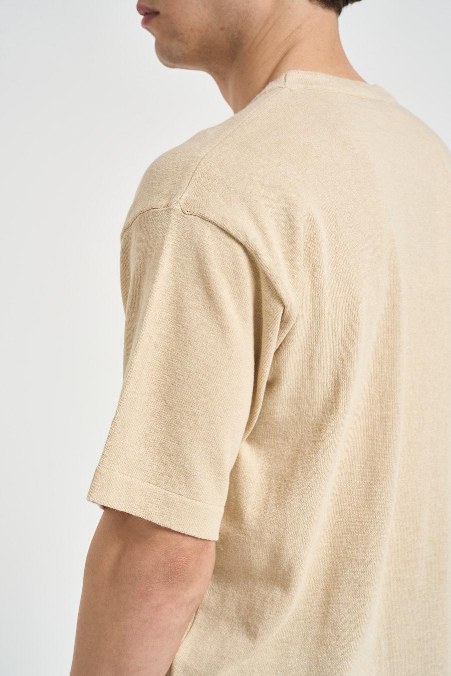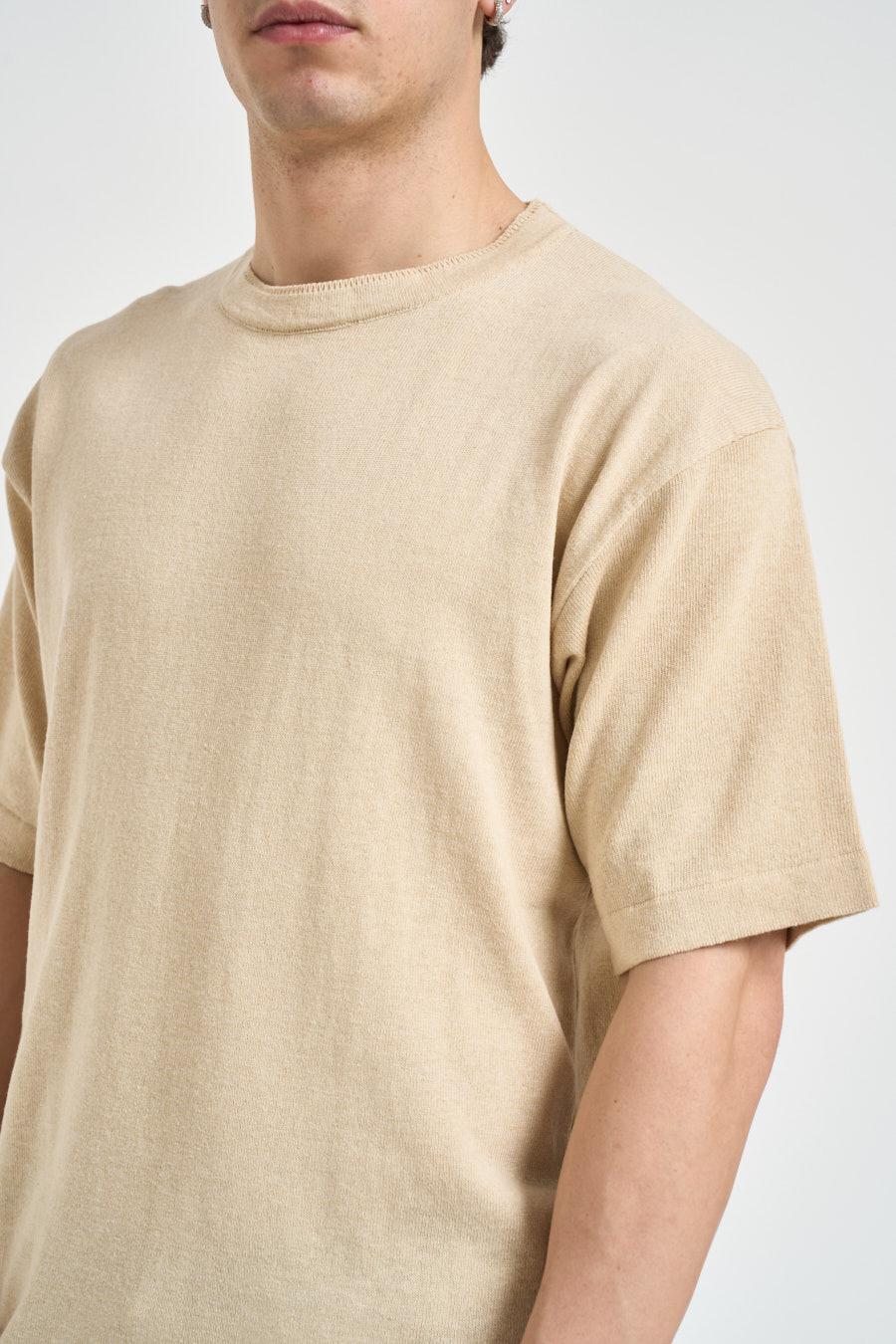 SEINSE T-shirt uomo girocollo beige. Modello con manica leggermente scesa. Manica corta. Girocollo. Composizione: 50% cotone, 50% acrilica. Il modello è alto 190cm e indossa la taglia L.