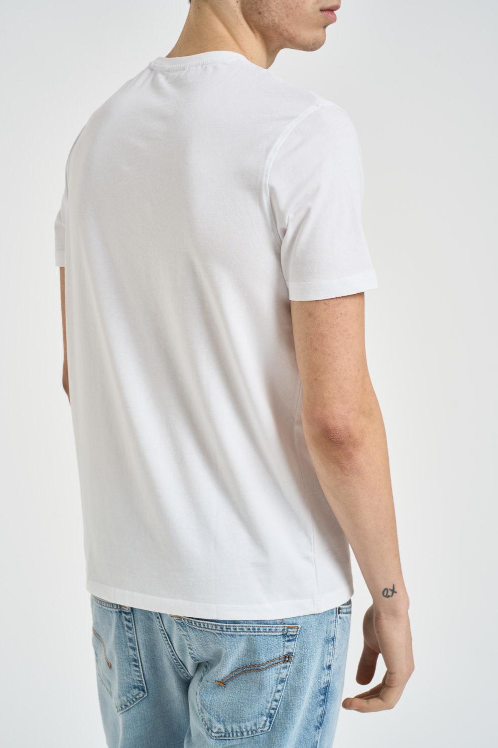 U.S POLO T-shirt uomo girocollo bianca. Modello a manica corta, logo ricamato sul petto a sinistra tono su tono. Composizione: 100% cotone. Il modello è alto 190 cm e indossa la taglia L.