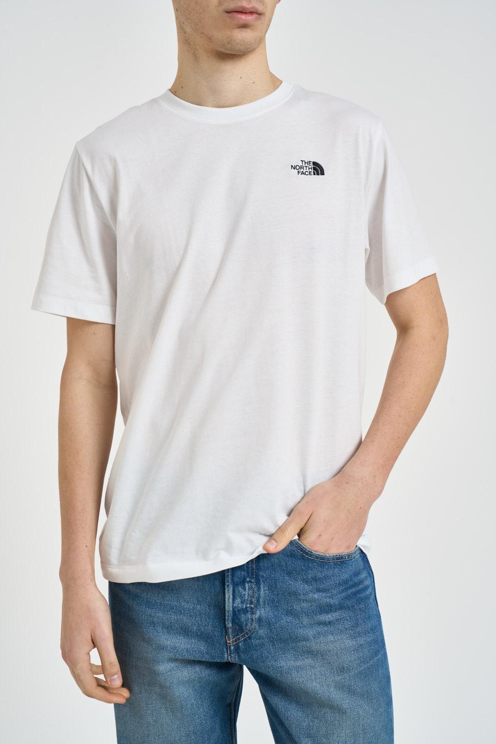 THE NORTH FACE T-shirt uomo girocollo bianca. Modello regular fit. Dettagli a costine. Manica corta. Nome del brand a contrasto sul petto. Composizione: 60% cotone, 40% poliestere. Il modello è alto 190cm e indossa la taglia L.