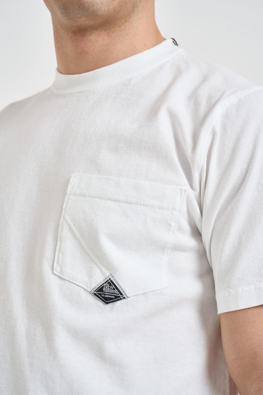 ROY ROGER'S T-shirt uomo girocollo bianca. Modello regular fit. Manica corta. Taschino sul petto. Composizione: 100% cotone. Il modello è alto 190 cm e indossa la taglia L.