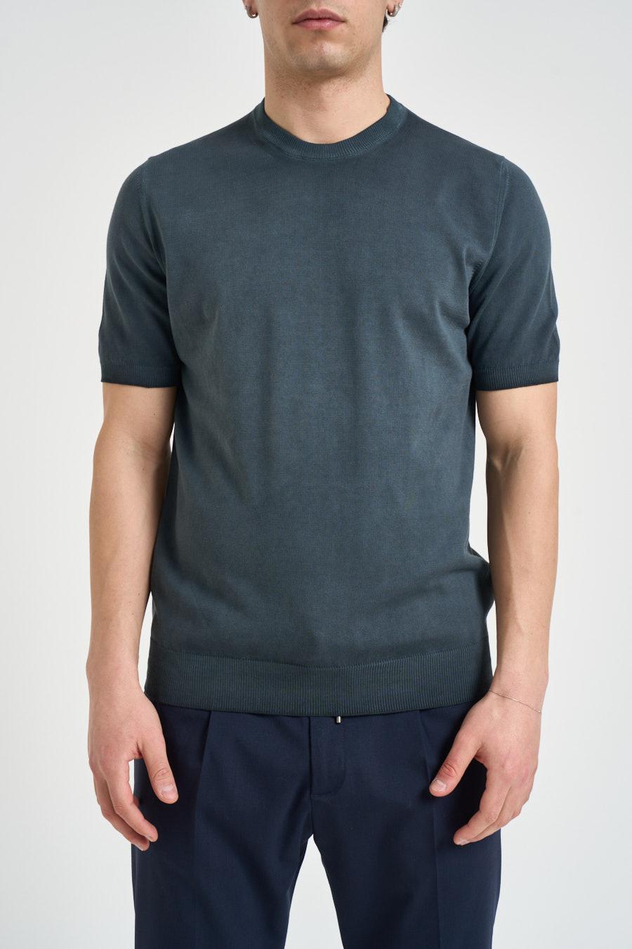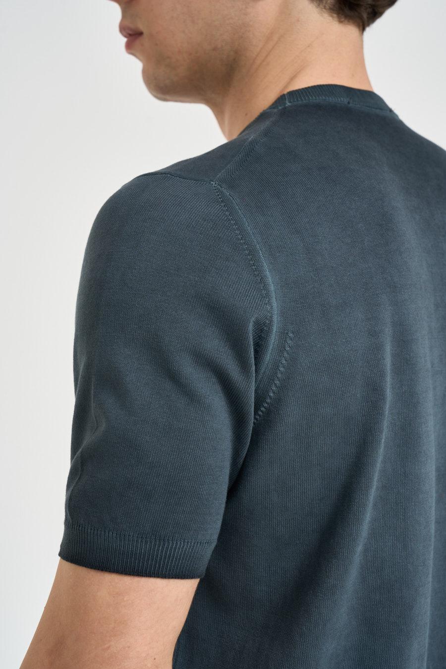 ALPHA STUDIO T-shirt uomo in maglia antracite. Modello regular fit. Manica corta. Girocollo. Dettagli a costine. Composizione: 100% cotone. Il modello è alto 190 cm e indossa la taglia 50.