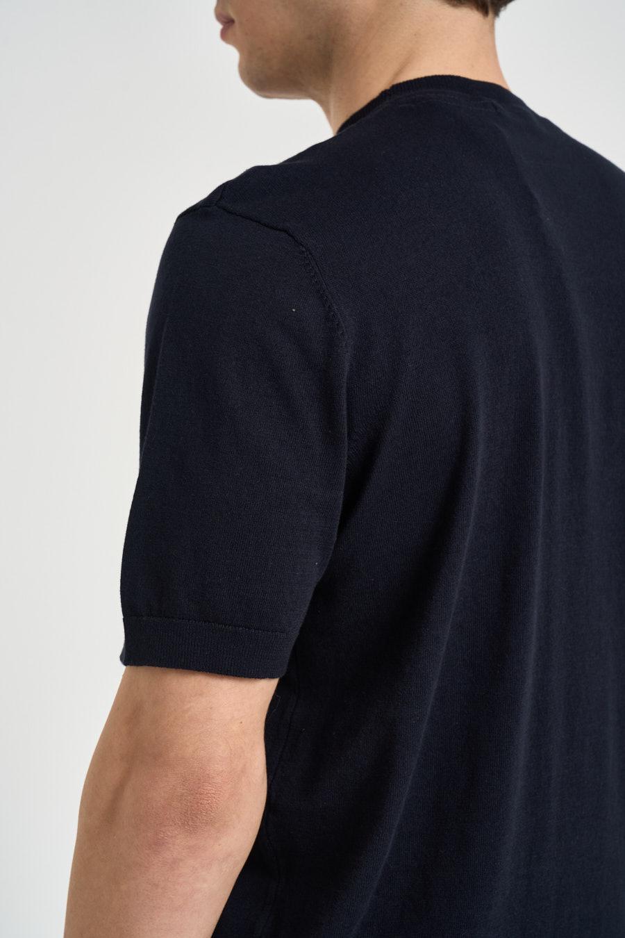 SEINSE T-shirt uomo in maglia blu notte. Modello regular fit. Manica corta. Dettagli a costine. Composizione: 100% cotone. Il modello è alto 190 cm e indossa la taglia L.