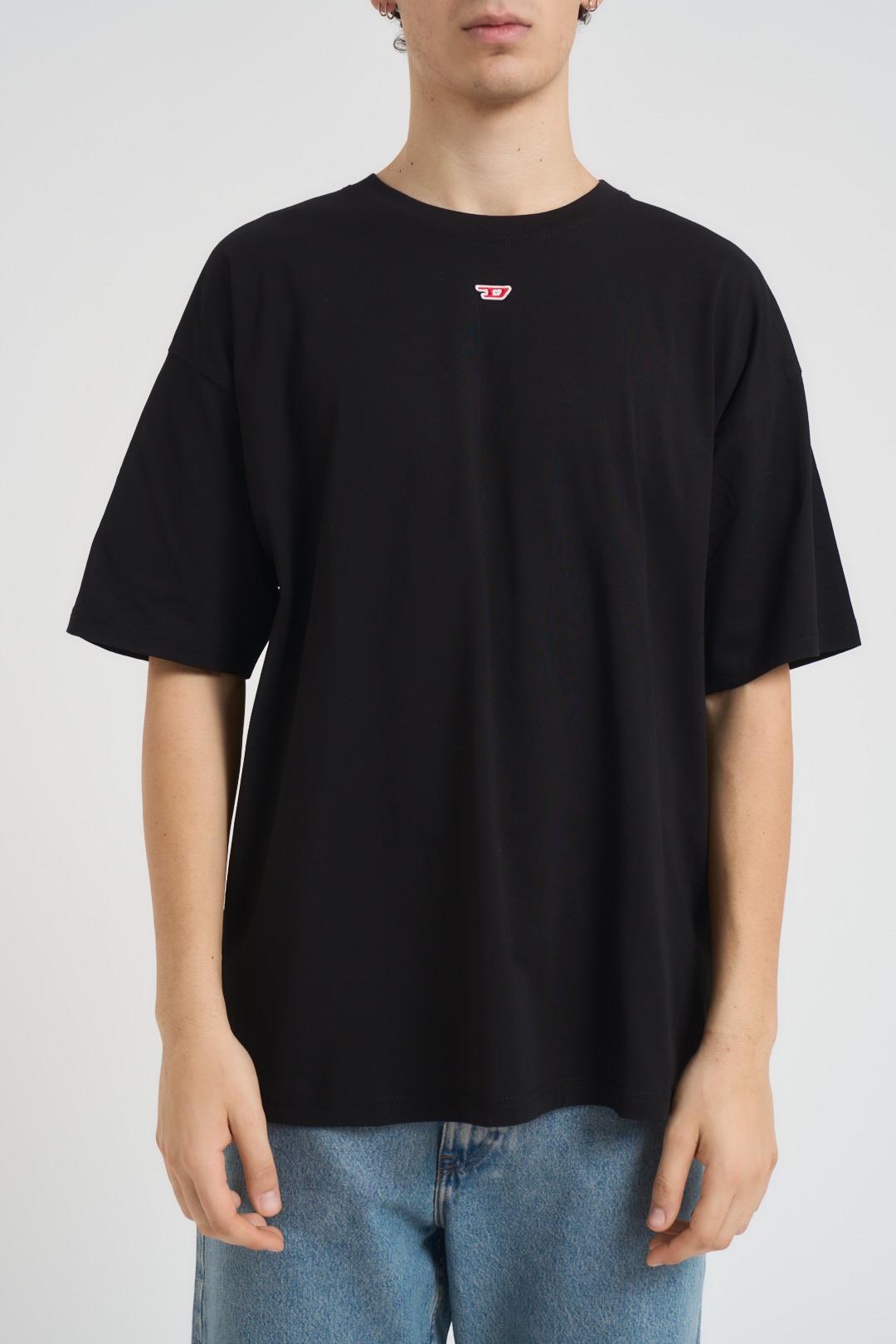 DIESEL T-shirt uomo T-Boxt-D nera. Modello girocollo a maniche corte. Mini patch D ricamata sul petto. Relaxed fit. Composizione: 100% Cotone. Il modello è alto 190 cm e indossa la taglia L.