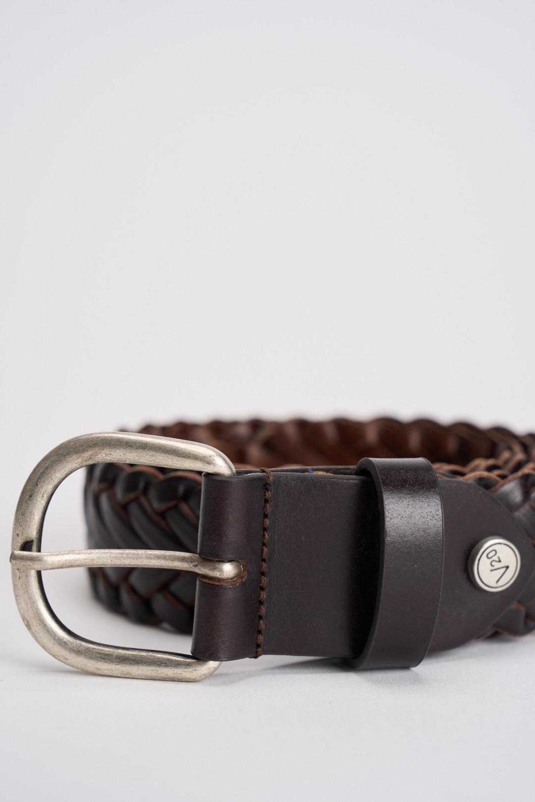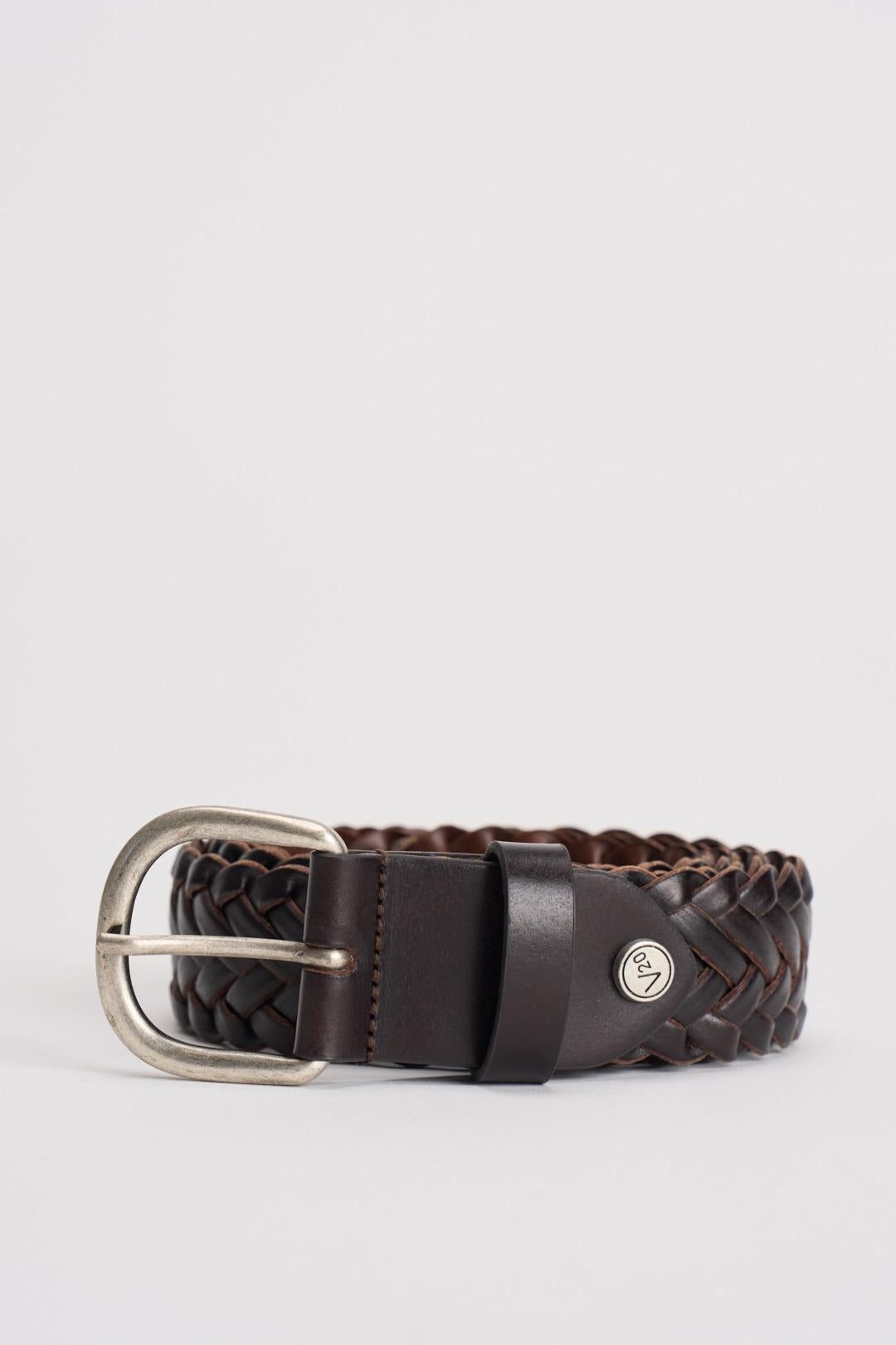 AGOEFILO Cintura uomo in pelle intrecciata testa di moro. Modello con hardware argento.